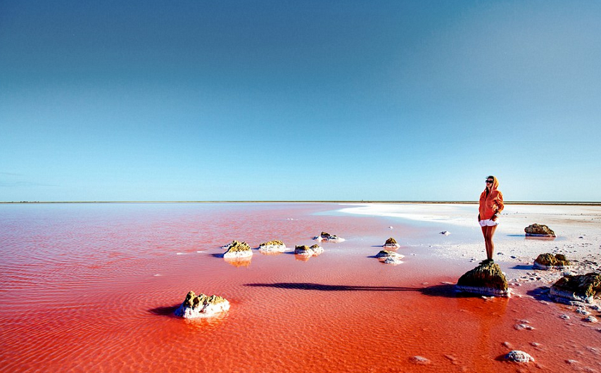 El lago es totalmente salado y sus tonalidades varían entre rosa y rojo carmesí y, dependiendo de la sombra, pueden verse tonalidades como el negro escarlata.