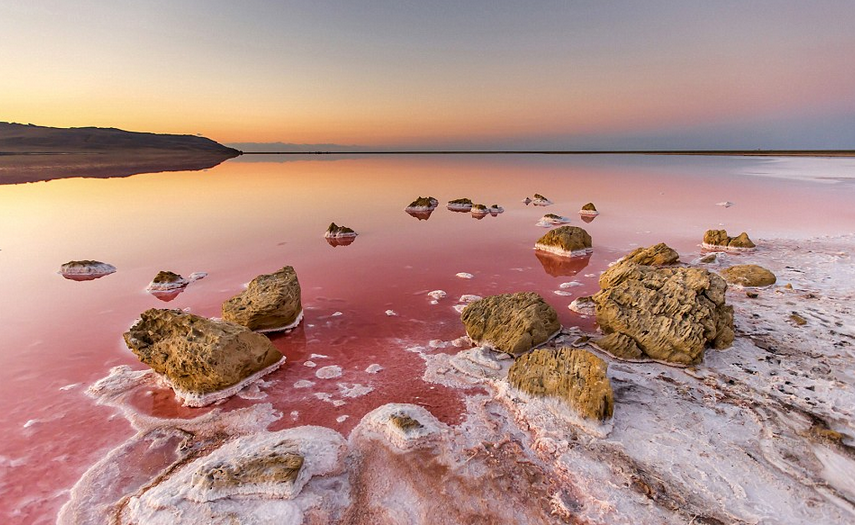 Las costas del lago se dotan de impresionantes cristales de sal, lo cual también regala un toque de belleza extra a este impresionante lugar. El lago cuenta con rocas que logran un efecto de impresionante para la vista de todo aquel que contempla el paisaje.