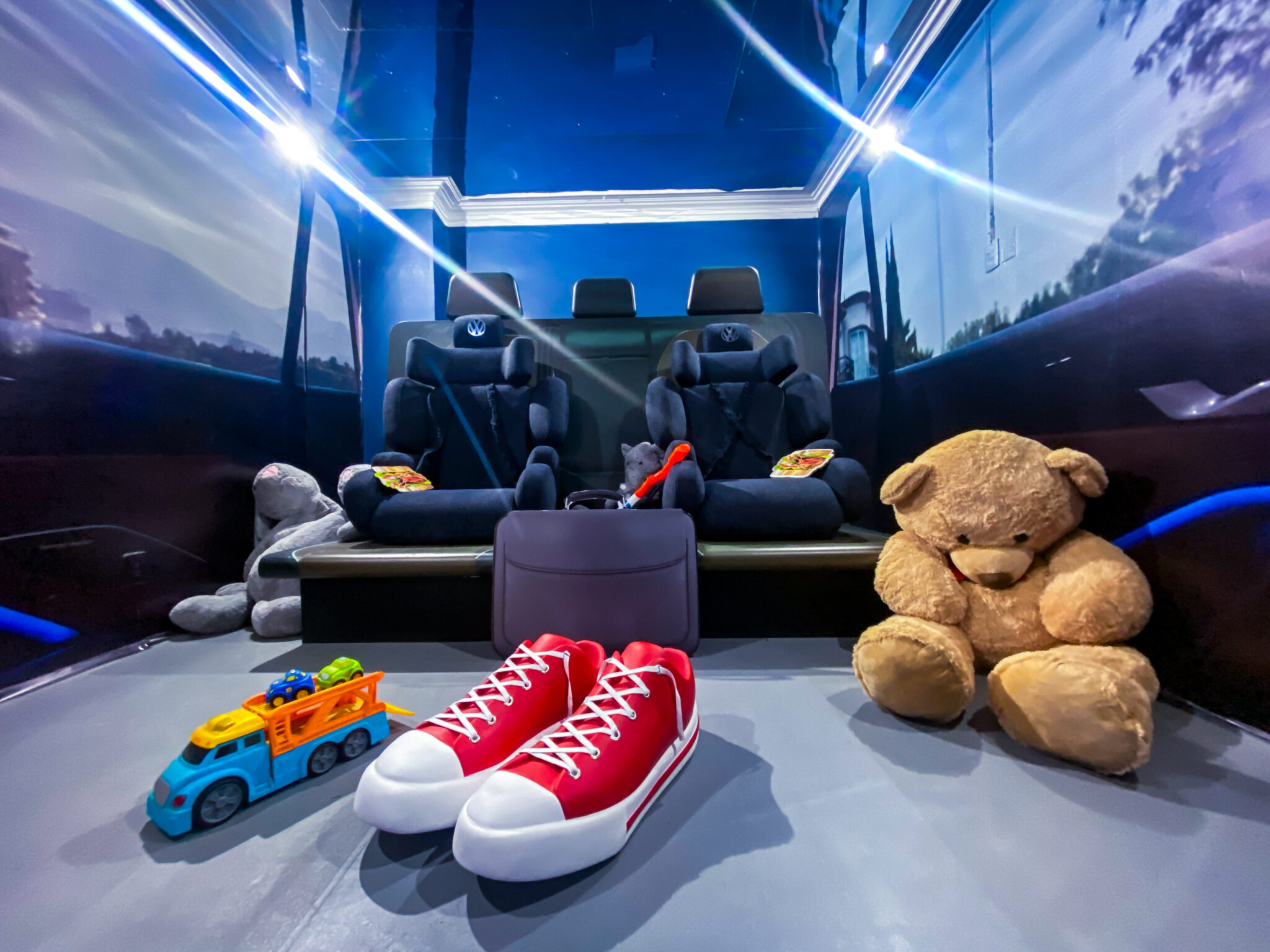 Desde el Cuarto de los Sentidos, donde luces, aromas y texturas te envuelven en una experiencia multisensorial, hasta el Espacio Futurista, un homenaje al diseño e innovación de Volkswagen, con tecnología que reacciona a tu presencia.