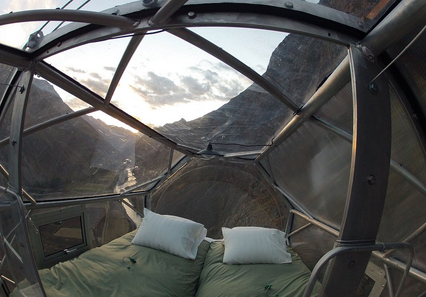 El nombre que acompaña a este increíble hotel es Natura Vive Skylodge y es realmente impresionante, pues gracias a sus dormitorios en forma de cápsulas transparentes que se aferran a las rocas de las montañas, podrás deleitar tus emociones y llenar tus sentidos de magia al ver el caer de la noche y disfrutar lo mejor del cielo y las estrellas, o bien de la llegada de los hermosos rayos del sol.