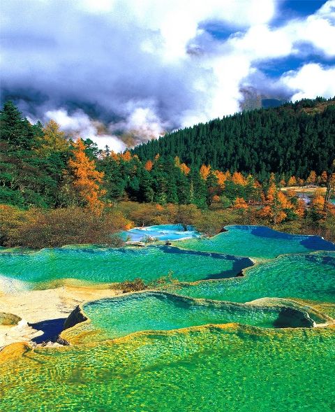 Este hermoso paisaje está ubicado en la montaña de Minshan en China y lo maravilloso de esto son las increíbles tonalidades del agua, pues sus colores verdes y azules turquesa son verdaderamente impresionantes.