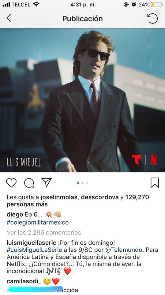 «A veces el amor gana«, escribió la ex esposa de Diego Luna al compartir una foto de la serie de Netflix, en la que se le ve abrazada y besando apasionadamente a Diego, quien caracteriza a Mickey. Ahí el youtuber y modelo Juanpa Zurita, quien interpreta a Alejando Basteri comentó: «¿En la serie o en la vida real» al cuestionar el romántico post de Sodi.