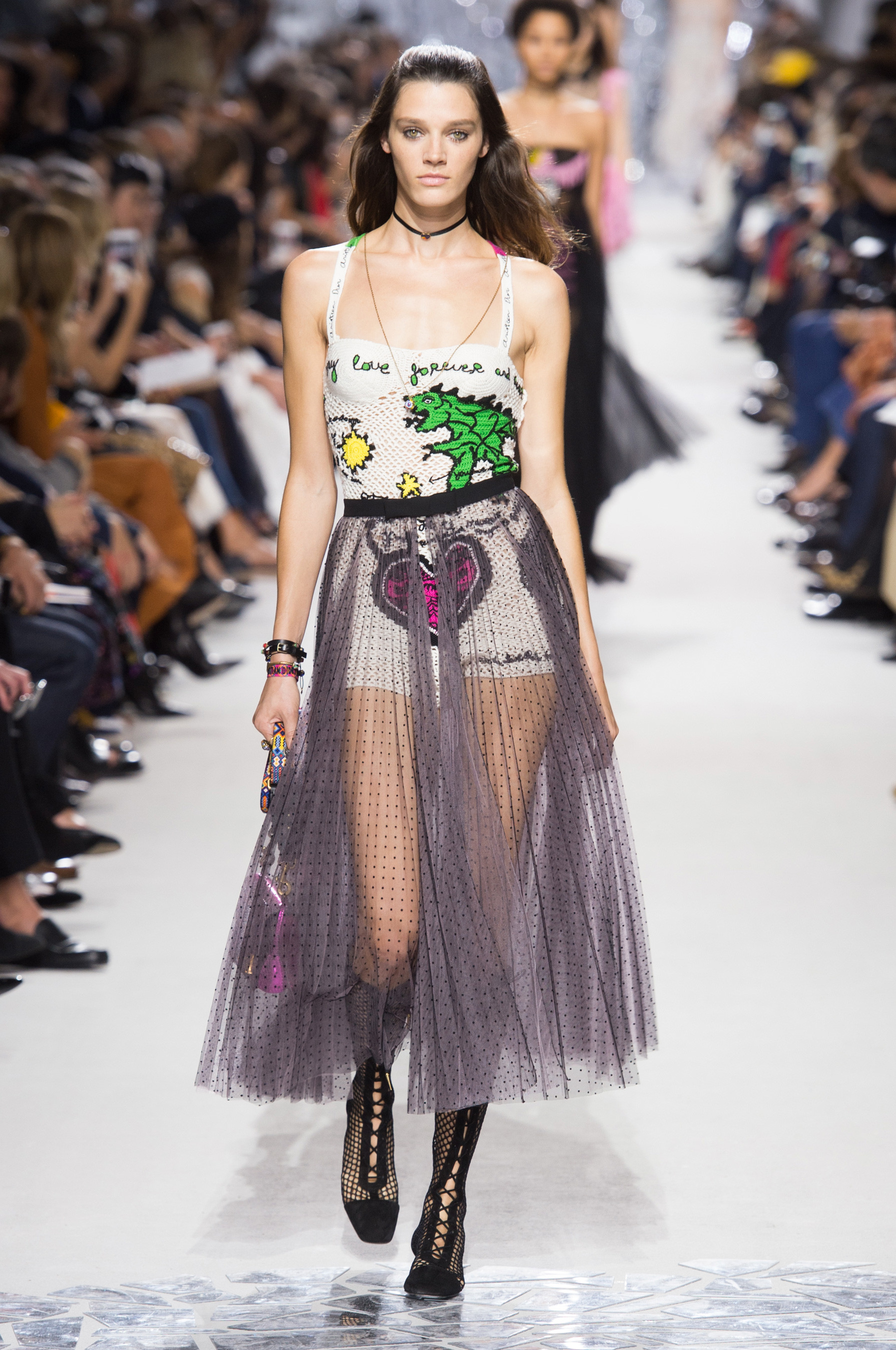 Pues hace unos días fue turno de una de nuestras firmas favoritas, Dior, la cual ofreció una increíble colección donde los vestidos de gasa, las sobrefaldas de tul, los escotes tipo corsé, las transparencias, los dinosaurios, el denim y las líneas marineras triunfaron completamente.