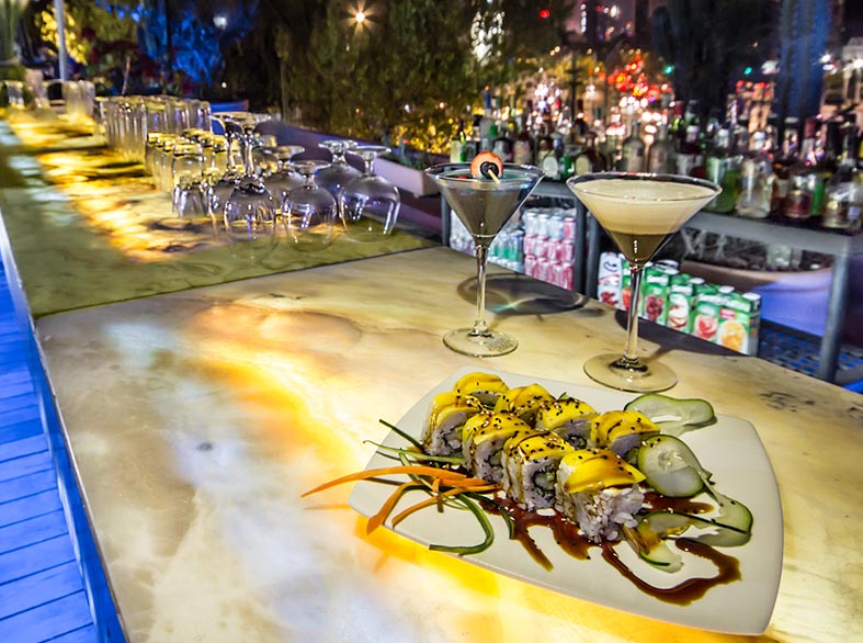 Además de ofrecerte una excelente gama de vinos, podrás disfrutar de una barra de sushi.