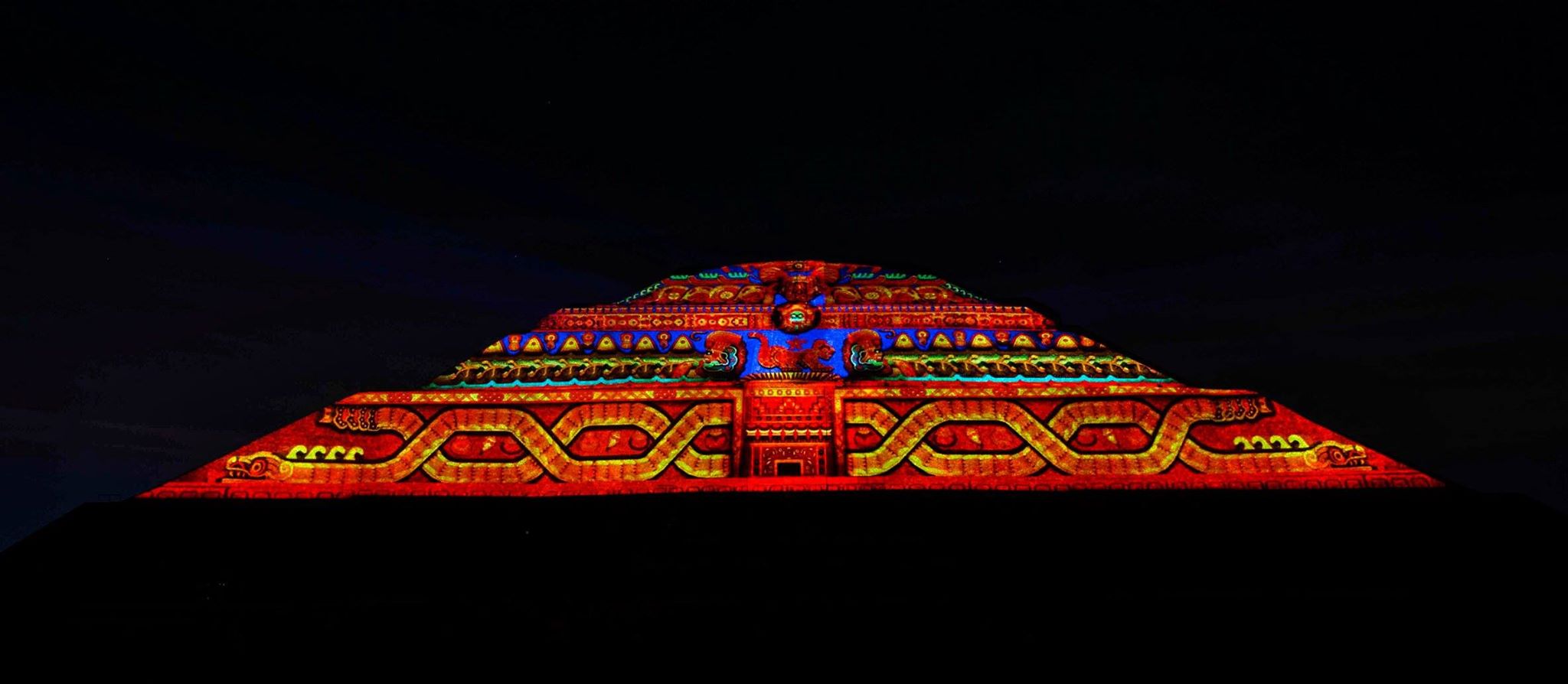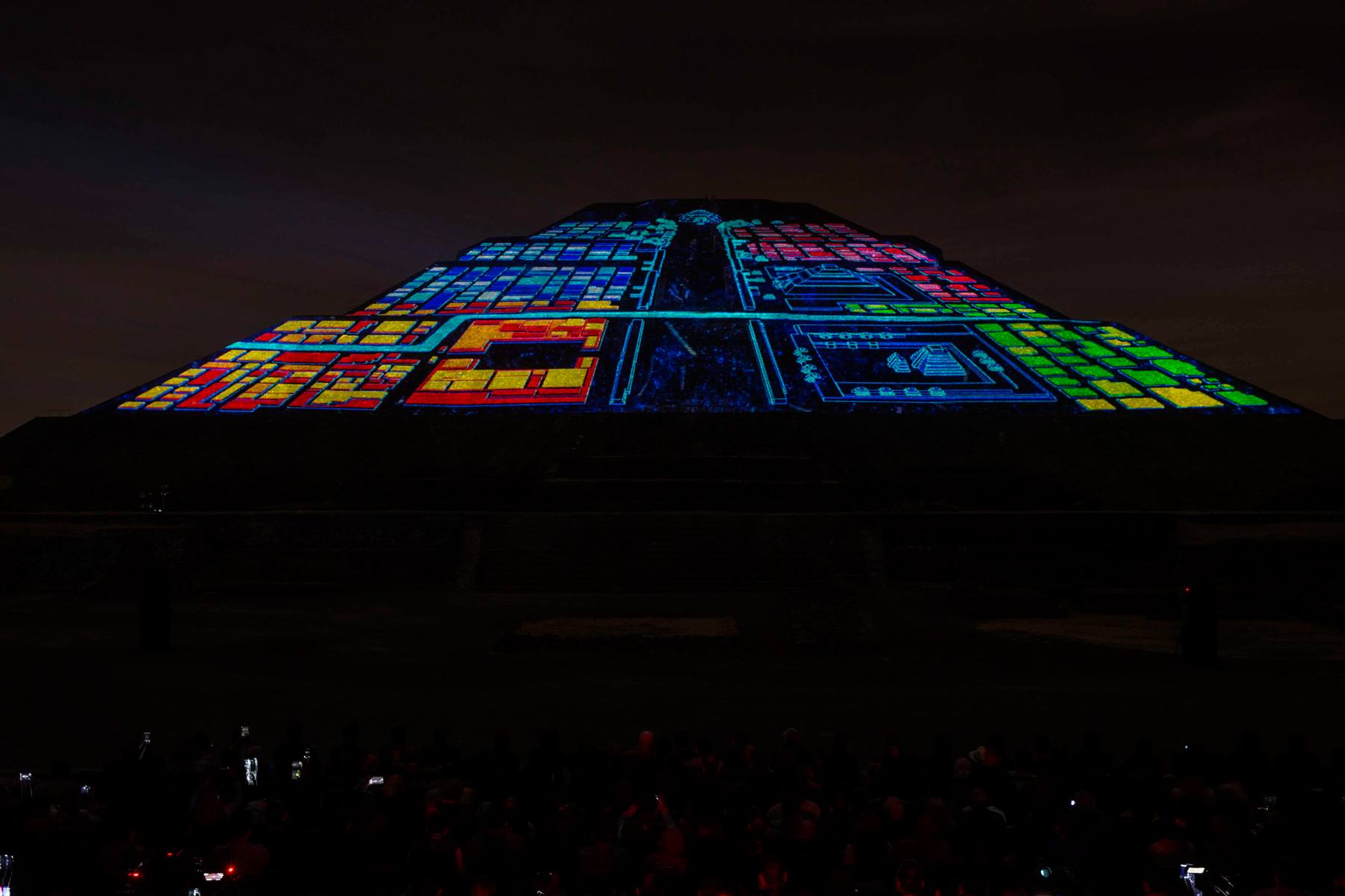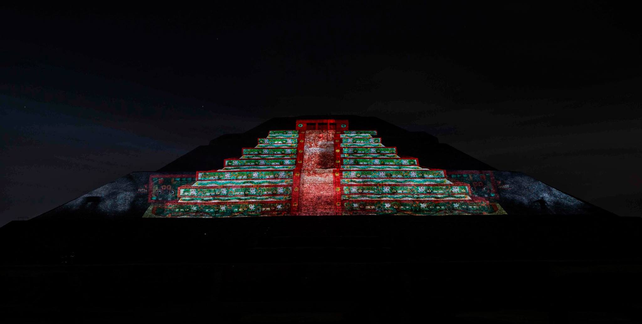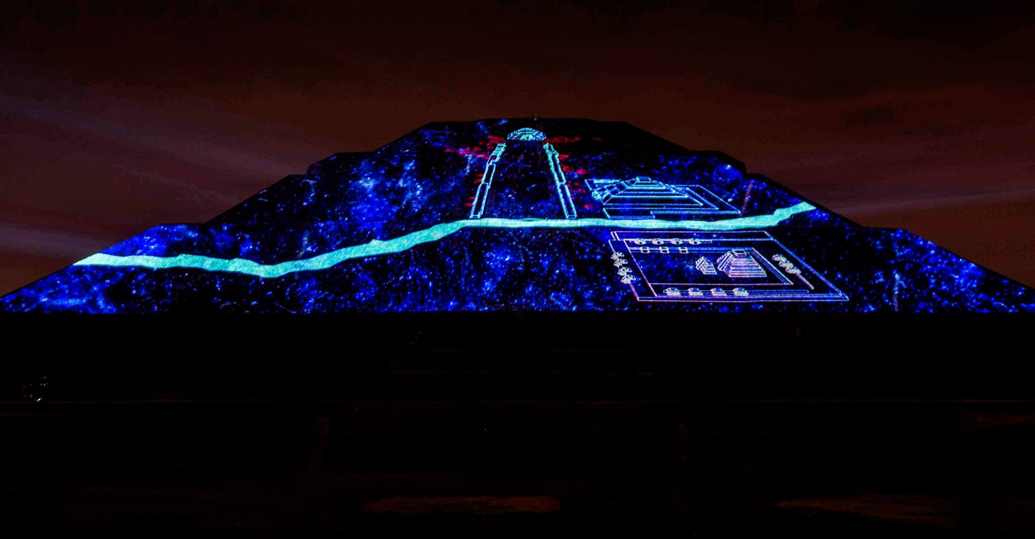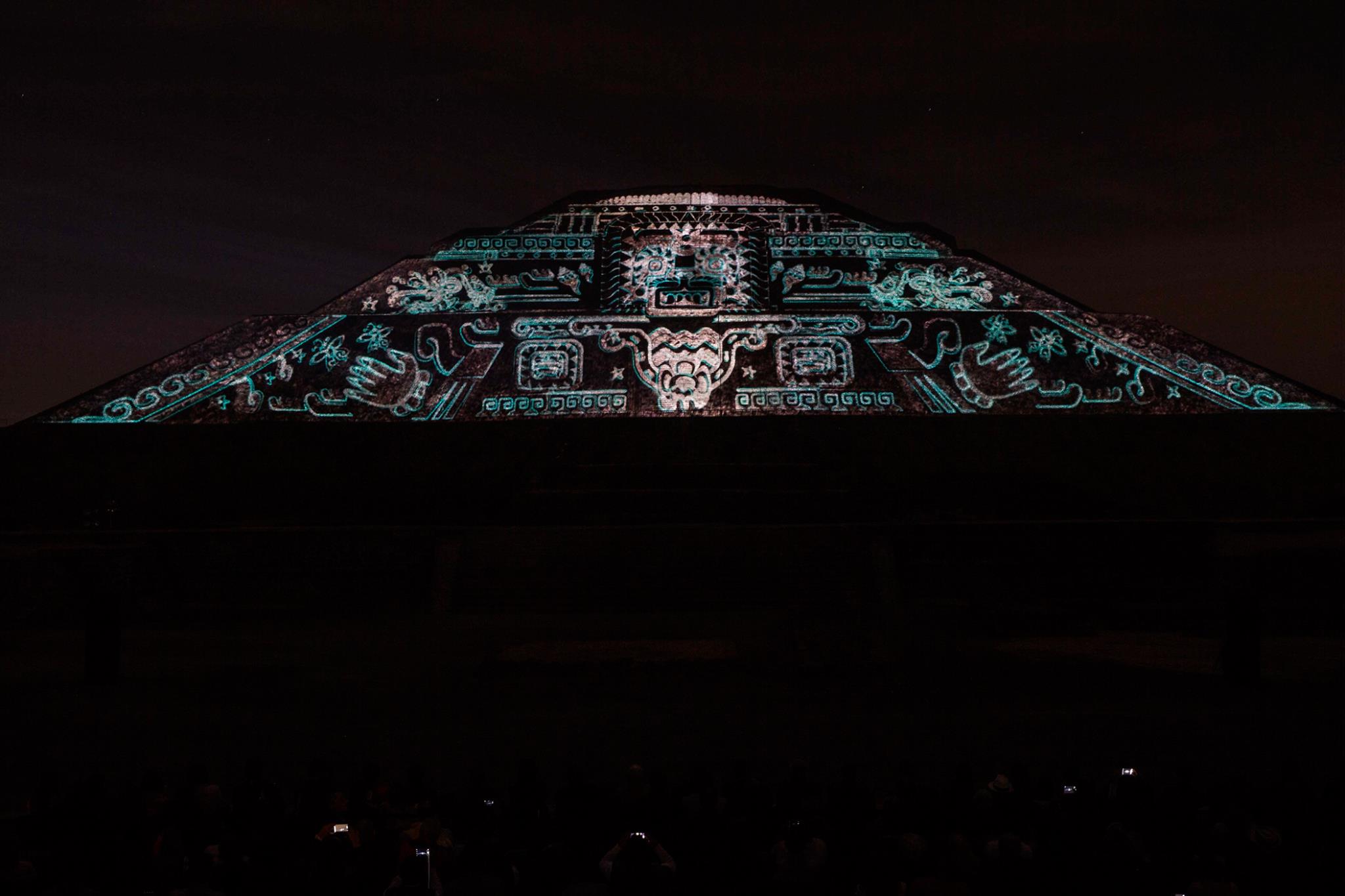 Esta experiencia de luz y sonido, consta de dos etapas, la primera se tiene la oportunidad de caminar por un tramo de la Calzada de los Muertos, en el que podrás apreciar la iluminación de la Pirámide del Sol y de la Luna, con los colores característicos de las ruinas arqueológicas, el recorrido tiene 10 estaciones a experimentar con un audioguía en español e inglés.