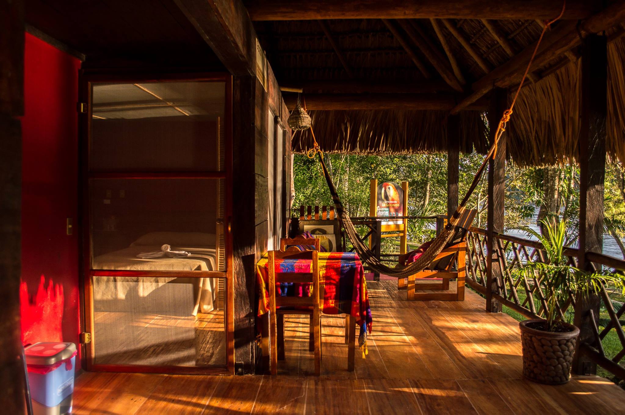 Las habitaciones son de tipo cabaña, por lo que permiten apreciar el sonido de las guacamayas y sus construcciones en madera te hace sentir un aroma que hace más agradable tu estancia.