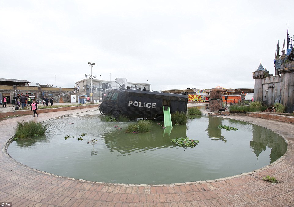 El artista y grafitero comentó que esta instalación es una parodia a Disneyland, así que debía crear ‘juegos’ y estructuras a tamaño real. Al mismo tiempo, no todo son atracciones, pues Bansky creó la escena completa al hacer esculturas de personas que están en Dismaland pasando su día.