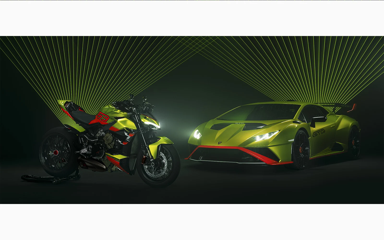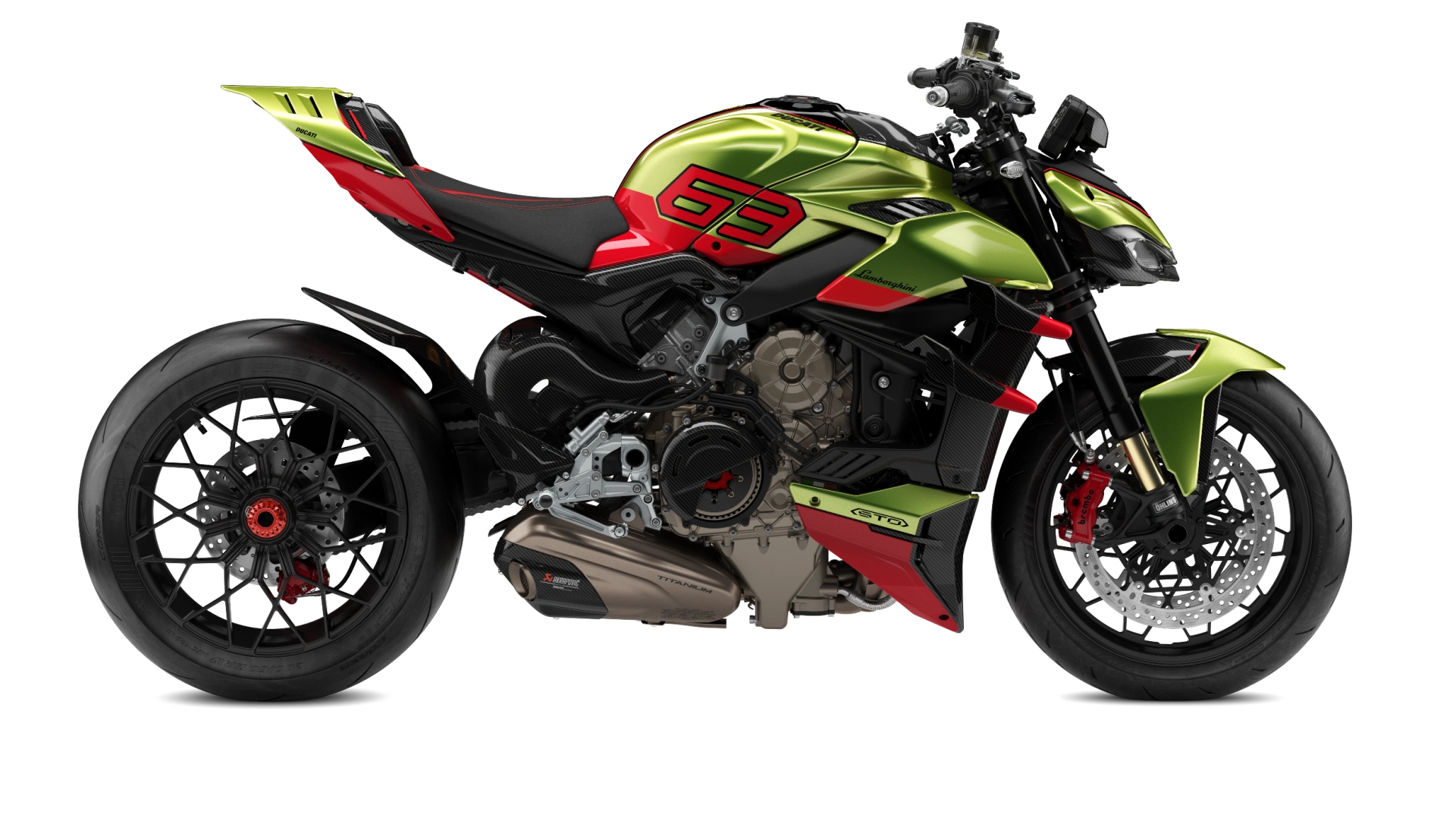 Ambas crearon una de las motos más exclusivas, limitándose a 630=63 unidades. Se trata de la Ducati Streetfighter V4 Lamborghini, que monta el motor de la Desmosedici Stradale de 1,103 centímteros cúbicos, mismo que desarrolla hasta 208 caballos. Tiene cuatro válvulas por cilindro y orden de encendido TwinPulse derivado del MotoGP. También se caracteriza por tener un embrague seco, como en las motos de carreras.