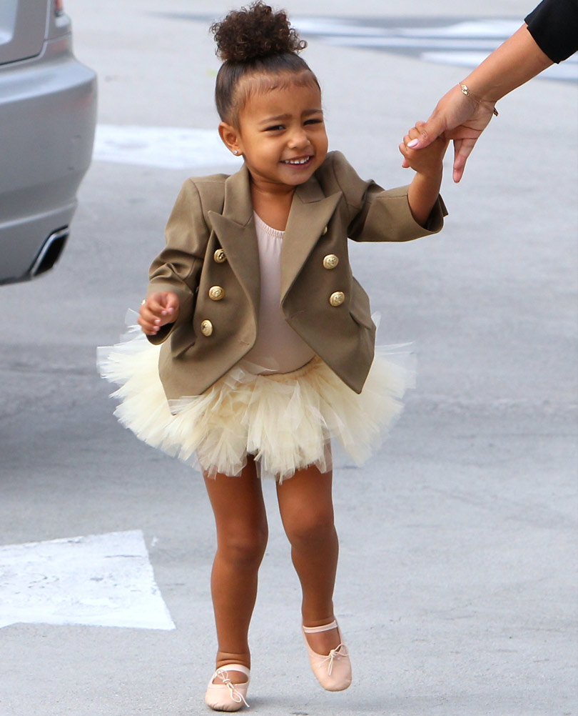 Para demostrar esto, sólo hace falta checar algunas de las prendas que tienen en su increíble clóset, como el famoso blazer de Balmain de aproximadamente 20,000 pesos que North West utiliza para sus clases de ballet, o la falda de plumas de avestruz de Blue Ivye de casi 15,000 pesos.