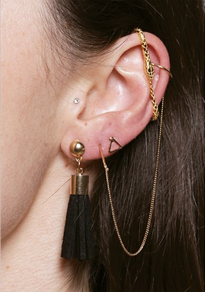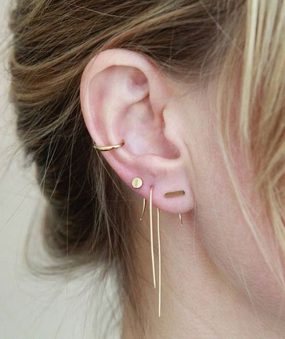 ¿A mis orejas? Si, ahí precisamente. Se trata de una nueva tendencia llamada earring layering, en la cual se trata de llenar toda tu oreja con un sin fin de joyería, estés o no estés perforada.