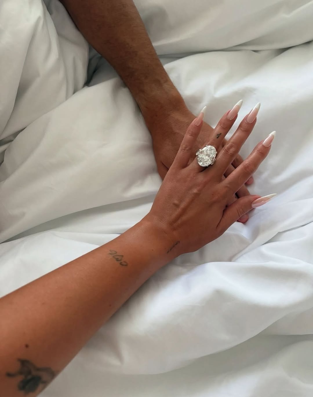 Georgina lució un enorme diamante ovalado, estimado entre 10 y 30 quilates según expertos y fuentes especializadas, lo que lo convierte en uno de los más impresionantes del año.