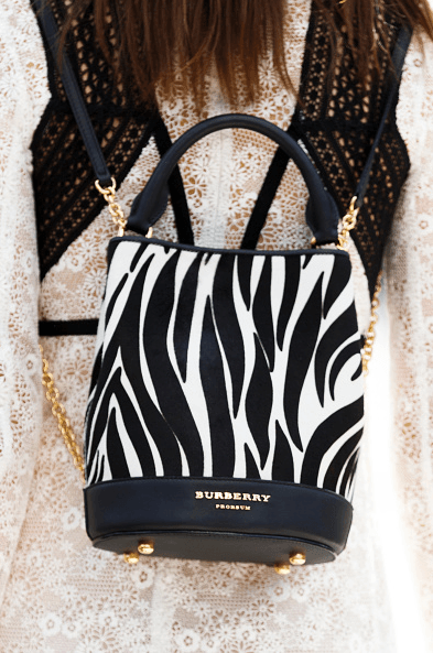 Burberry le dio la bienvenida al animal print en este bolso, el cual tiene varias características, viene en tamaño portafolio, en bucket bag y en bag pack. Y a pesar de que también lo podemos ver en mujeres, los hombres fueron quienes más lucieron los bolsos.