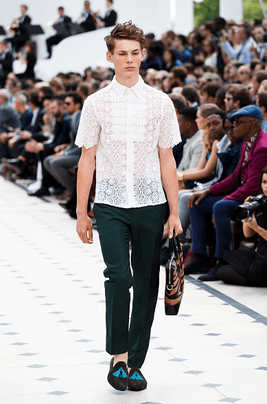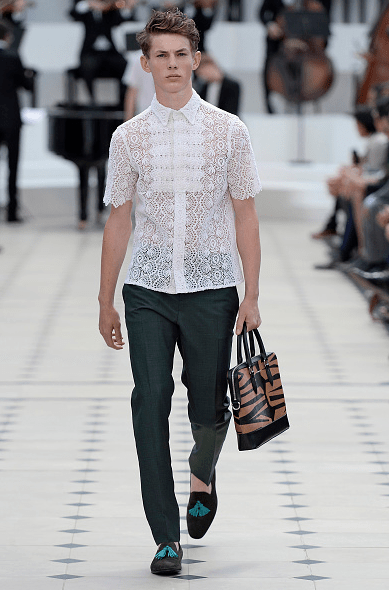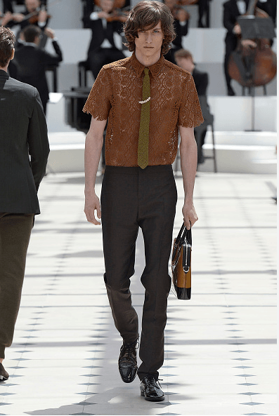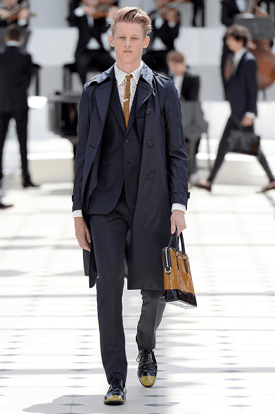 En el desfile Prorsum, el tema principal fue que los hombres también pueden llevar bolsos y clutch, incluso más grandes que un bolso convencional de mujer. Burberry propone que su nueva línea contenga accesorios totalmente unisex.