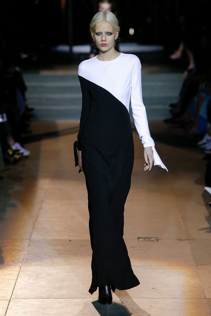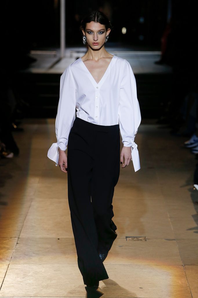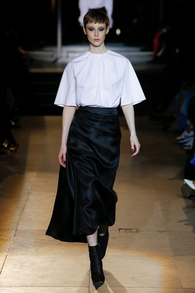 No podía faltar su clásico binomio blanco y negro ni sus camisas blancas, combinadas con faldas de abertura lateral.