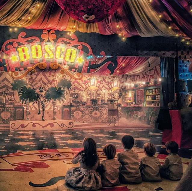 Los invitados, disfrutaron de un espectáculo lleno de luces y sonido en el que los arlequines le dieron un toque especial, además la fiesta estuvo adornada con miles de rosas rojas y elementos característicos de un circo.