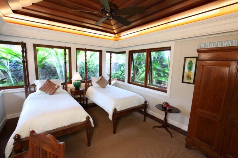 La «casa principal» cuenta con cinco dormitorios y seis baños. La cocina es de estilo gourmet y en el exterior se destacan un montón de asientos al aire libre salón para disfrutar la belleza de la naturaleza, como la playa de Kailua y las islas Mokulua. Y, si la naturaleza no es lo tuyo, la casa también ofrece un televisor de pantalla plana de 60 pulgadas.