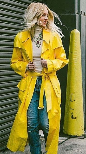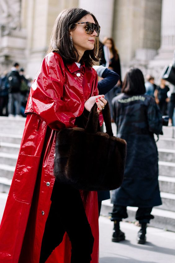 Y si deseas proteger tu outfit de las lluvias una chaqueta de látex es la mejor opción para ti. Dale color a tus looks invernales y lleva este material en tonos amarillos o rojos.
