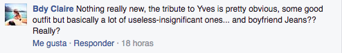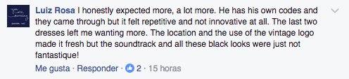 Sin embargo, nos vamos del lado de los miles que vieron el desfile por streaming quienes vieron algo más allá de los expertos en moda: las prendas no son nada accesibles. Por un lado, vemos que la colección es Primavera/ Verano 2017 y en la mayoría el color está ausente a excepción de algunos animal print y metálicos, lo que más se ve es el negro. En cuanto a texturas, sólo vemos leather, transparencias y jeans; cuando los fanáticos de la firma esperábamos algo innovador.
