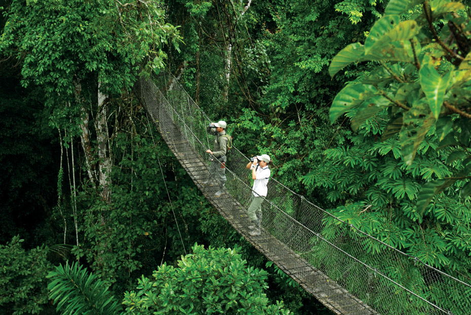 La zona de Inkaterra cuenta con dos torres altas y siete puentes colgantes que recorre los árboles más altos del mundo, esto gracias a su sociedad con el Banco Mundial y National Geographic. A pesar de que se encuentran ubicados en el interior de la selva, el recorrido de estos puentes es de lo más seguro del mundo por su fuerte construcción.