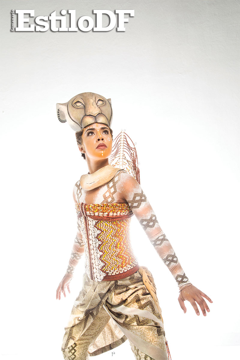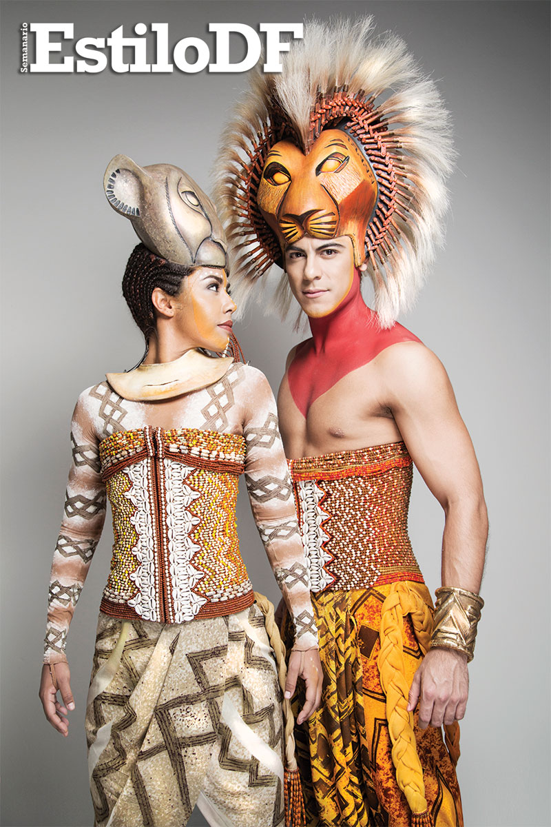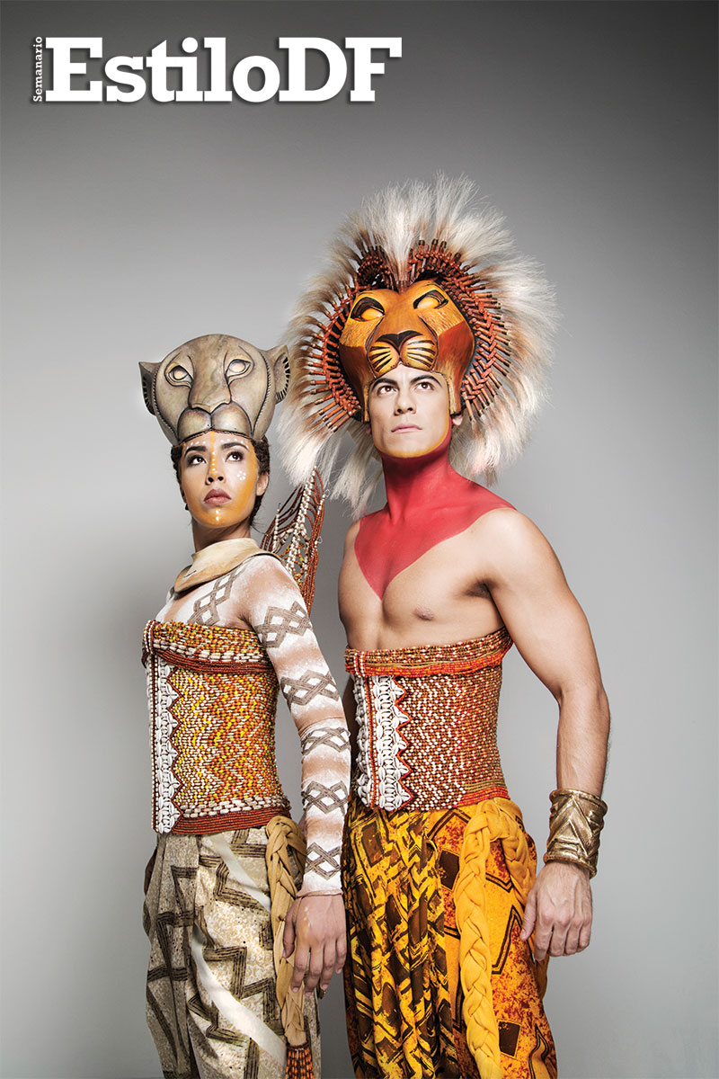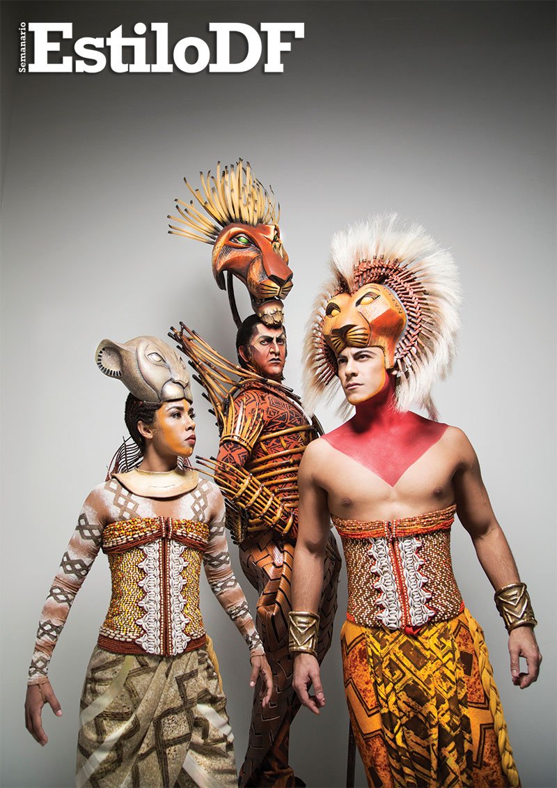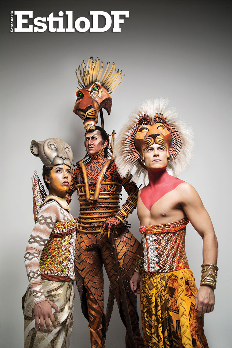 Máscaras, figuras de animales de la selva, así como coloridos penachos, son algunos de los elementos que alcanzo a mirar mientras me dirijo a la sala donde ya nos esperan Fela Domínguez, Carlos Rivera y Flavio Medina, quienes dan vida a Nala, Simba y Scar, respectivamente.