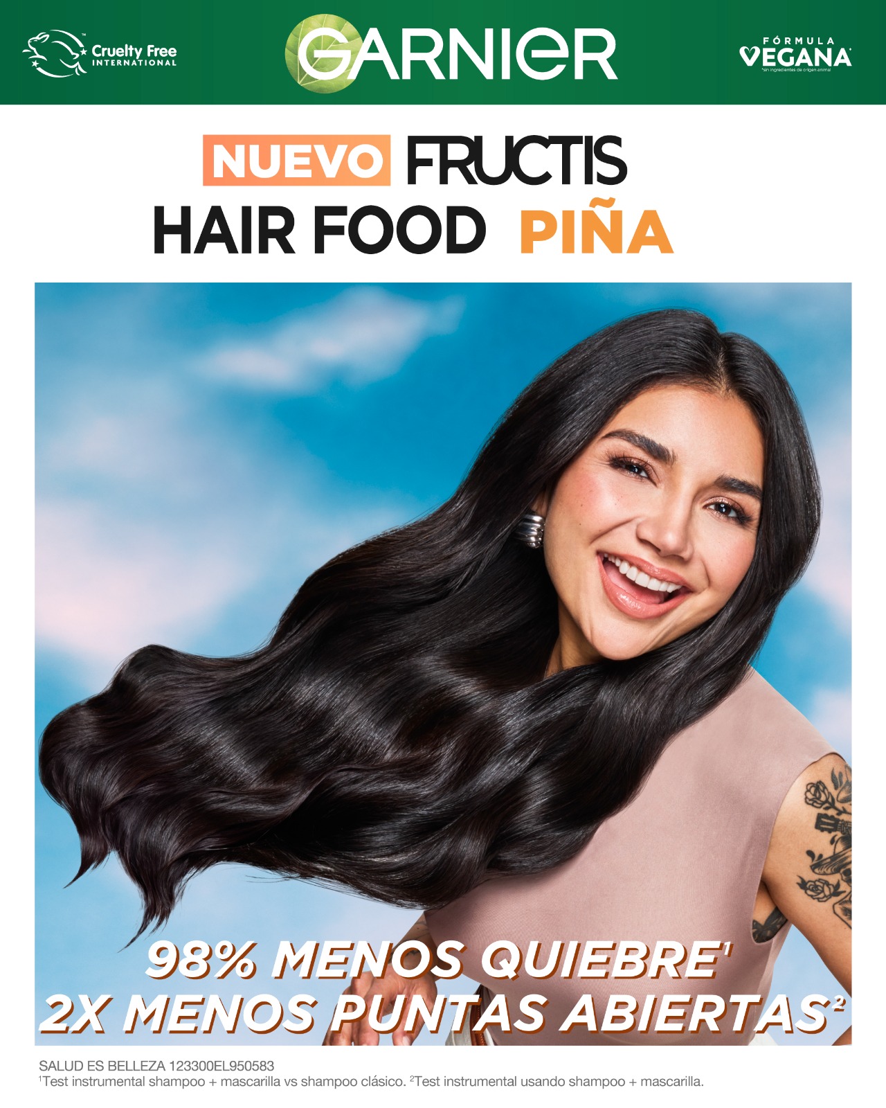 ¡No cortes tu pelo largo, córtale al daño con la nueva línea Garnier Fructis Hair Food Piña! Dale 98% menos quiebre y 2x menos puntas abiertas a tu pelo, con una fragancia irresistible.