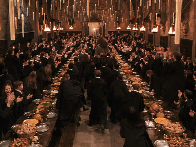 El Gran Salón es donde se llevaron a cabo todas las escenas del comedor de Harry Potter y fue repetida varias veces para lograr el efecto de mesas larguísimas y el techo fue intervenido digitalmente.