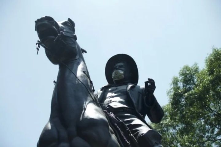Además del WTC, hubo monumentos de dicha alcaldía que ahora también tienen puesto un cubrebocas. Entre ellos destacan las estatuas de Benito Juárez, Francisco Villa, Valentín Gómez Farías y hasta la Cabeza Olmeca del Parque Hundido. Míralos.