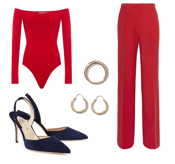 En redes sociales circulan fotografías de la estrella de Harry Potter, utilizando un bodysuit y pantalones rojos de la diseñadora Gabriela Hearst, ambos elaborados con materiales ecológicos.