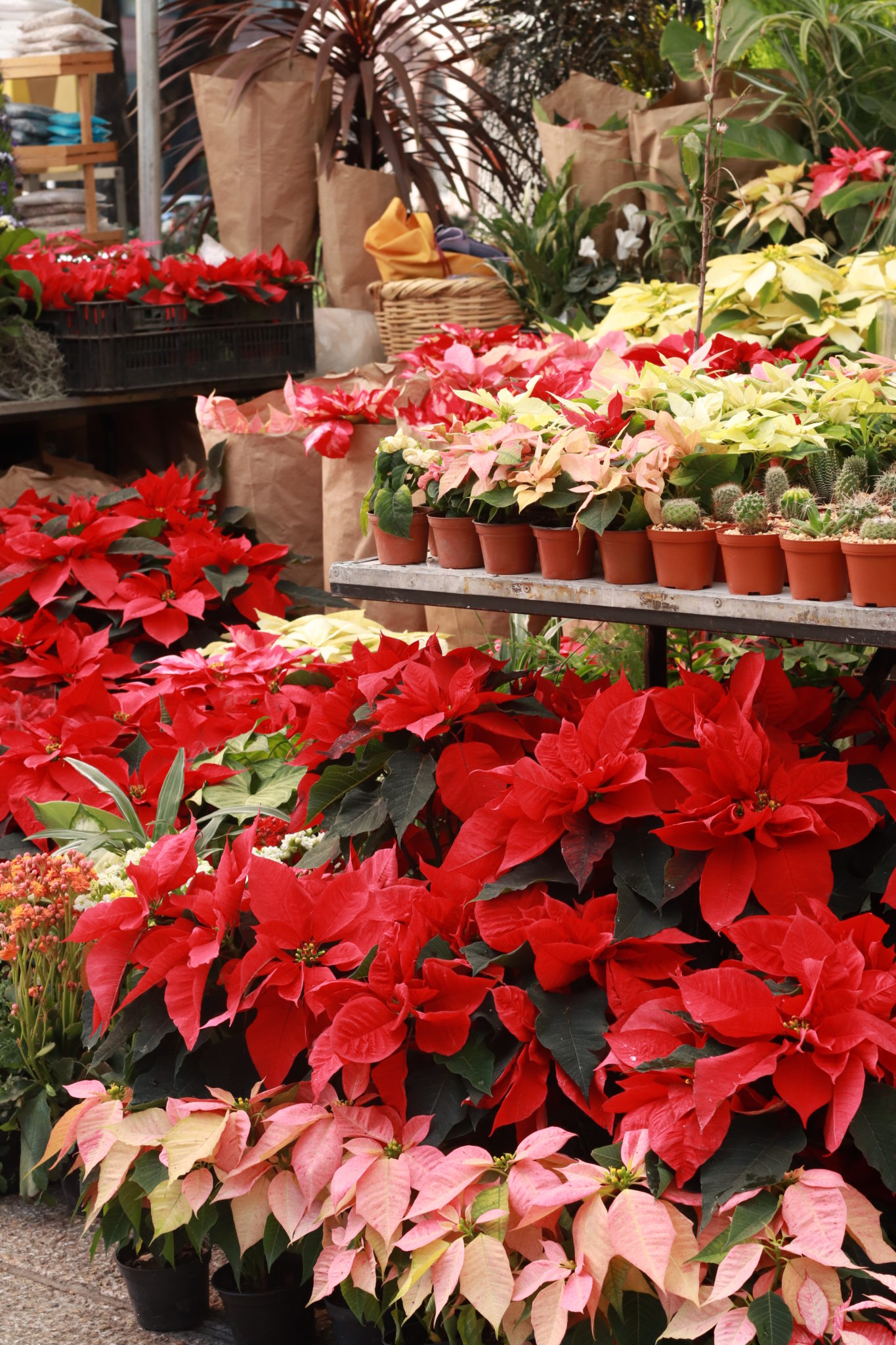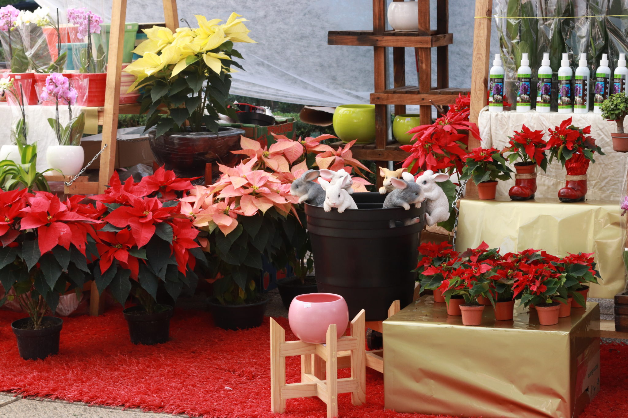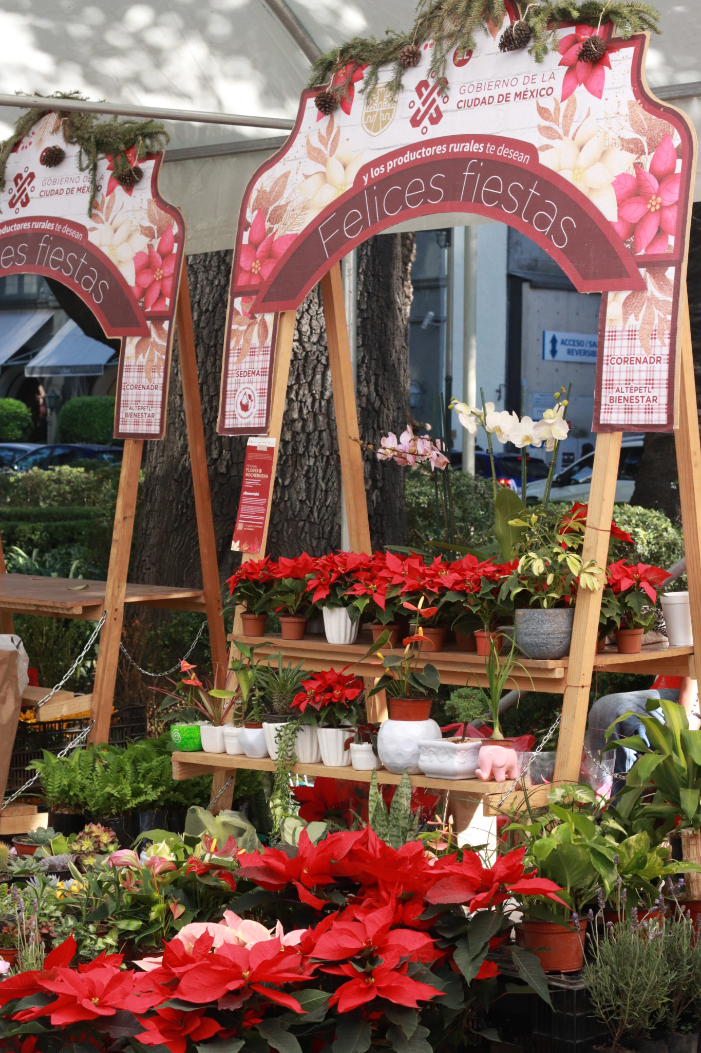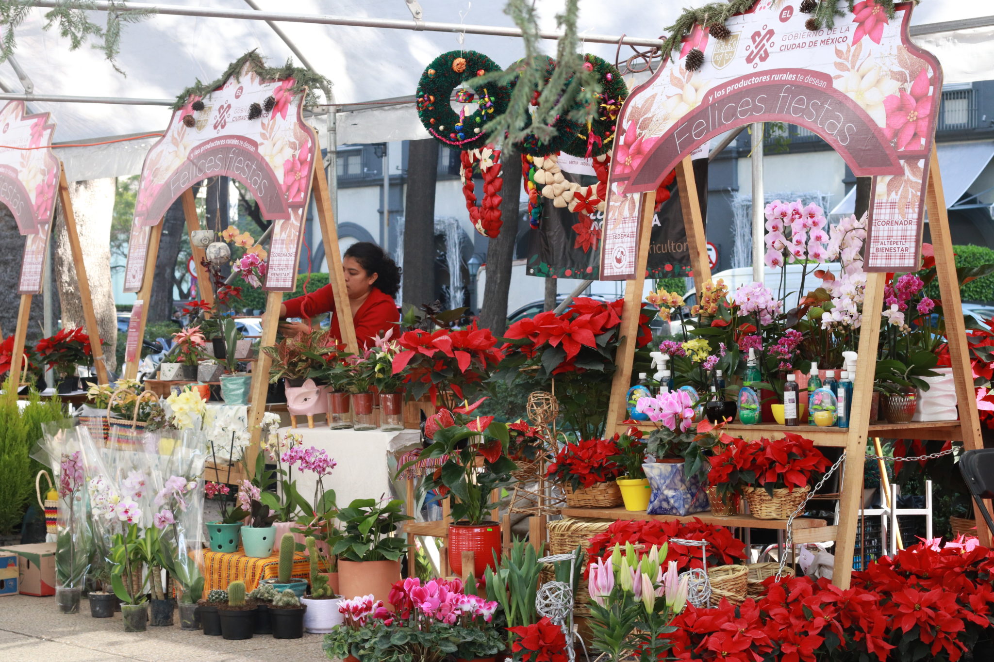 Desde la Estela de Luz hasta la Glorieta de la Diana podrás encontrar en ambos lados de Reforma distintos stands que ofrecen nochebuenas como producto estrella, pero también macetas, adornos navideños para el jardín, fertilizantes, nacimientos, lirios, suculentas y hasta conejitos de adorno para poner en tus plantitas durante todo el año.
