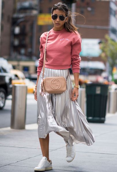 Si eres novata en esto de los looks con sudadera: para los outfits más elaborados y que van más allá del vaquero debes tener muy en cuenta el diseño y estampado de la sudadera. Si vas a optar por pantalones o faldas llamativas, es aconsejable que la sudadera sea lisa y que no acapare demasiado la atención con tal de no sobrecargar el look. Si, por el contrario, lo que quieres es destacar la parte de arriba, escoge sudaderas metalizadas, de neopreno o acolchadas y una parte de abajo más discreta.