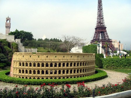Desde la Torre Eiffel hasta la Plaza de San Pedro, este sitio alberga 130 réplicas miniatura de los edificios, los monumentos y los atractivos turísticos más populares.
