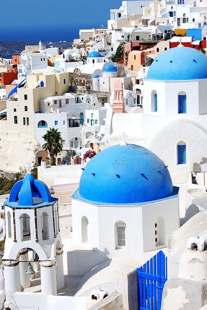 Santorini es una de las islas más bonitas de Grecia y está formada por erupciones volcánicas. Tiene una increíble bahía donde podrás deleitar tu pupila con vistas espectaculares del mar y una gran bahía con islotes en medio. Este lugar también es muy conocido por sus pintorescas casas blancas con techos azules.
