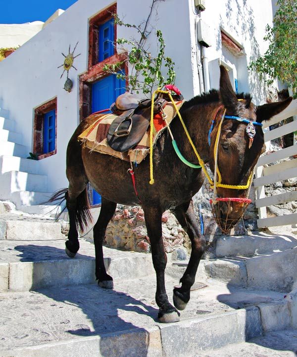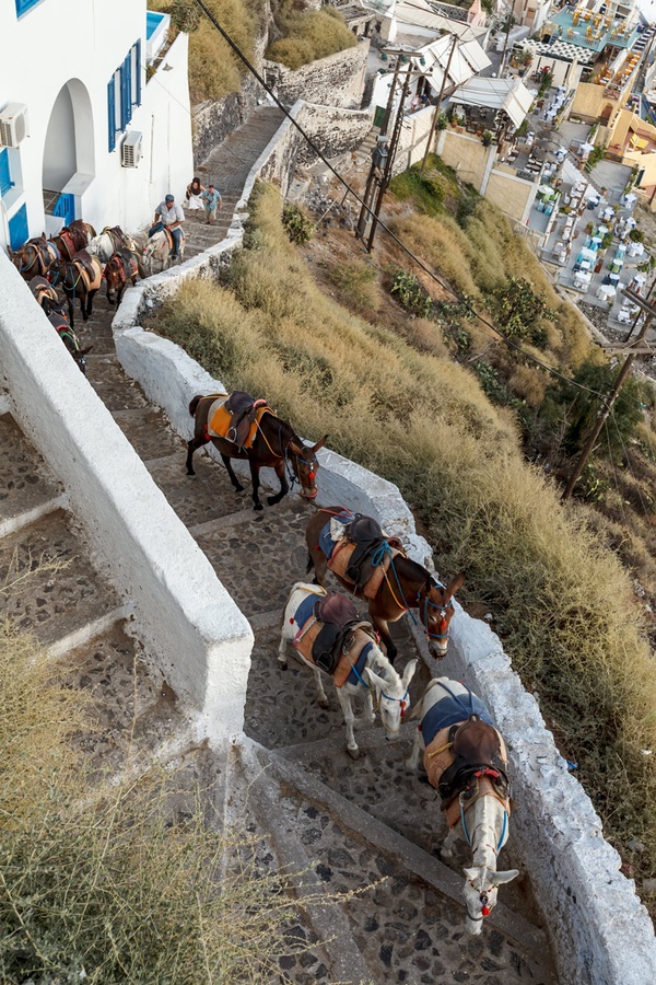 Si quieres vivir una experiencia única de este lugar, recorre las grandes escaleras hasta la cima de Firra en el lomo de un burro. Estos lindos animales te acompañarán a recorrer un camino muy empinado con 587 escalones mientras admiras el pintoresco paisaje de la isla mediterránea.