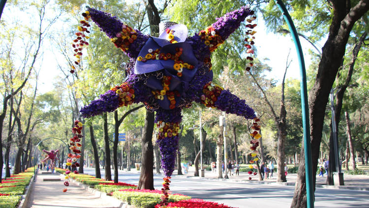 Así es, 14 piñatas de siete picos fueron intervenidas por distintos artistas nacionales con flora de todo tipo y otros elementos, para adornar el tramo entre el Museo Tamayo y el Museo Nacional de Antropología.