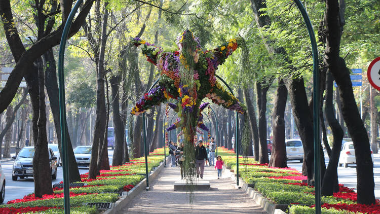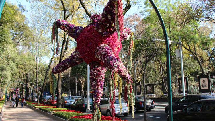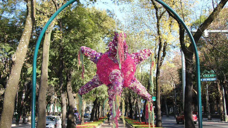 La Navidad siempre está llena de ponche, posadas, nochebuenas y árboles decorados… Pero en México, las piñatas no pueden faltar en esta celebración. Y como prueba está la última exhibición sobre el Paseo de la Reforma que llenó las calles con unas impresionantes piezas hechas con flores.