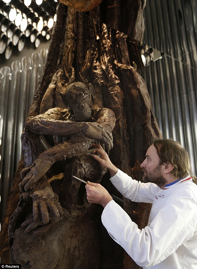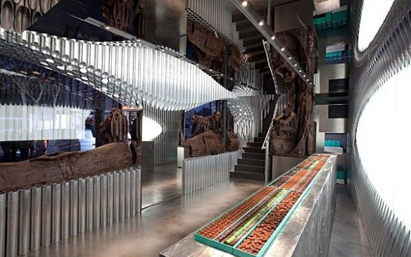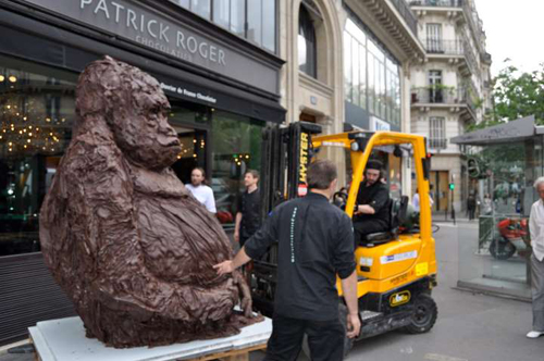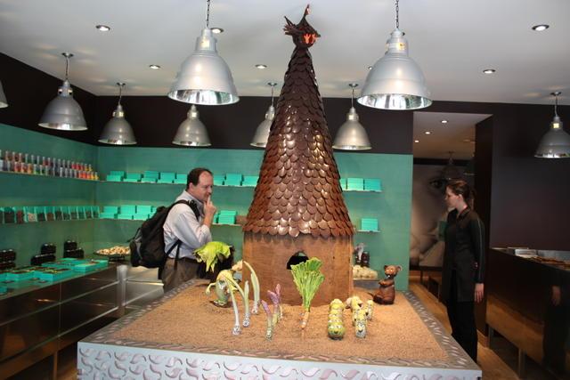 Réplicas de animales en tamaño real, que llegan a necesitar más de 80 kilos de chocolate para su modelado, son la decoración principal de las boutiques, y resulta impresionante el nivel de realismo que este francés alcanza.