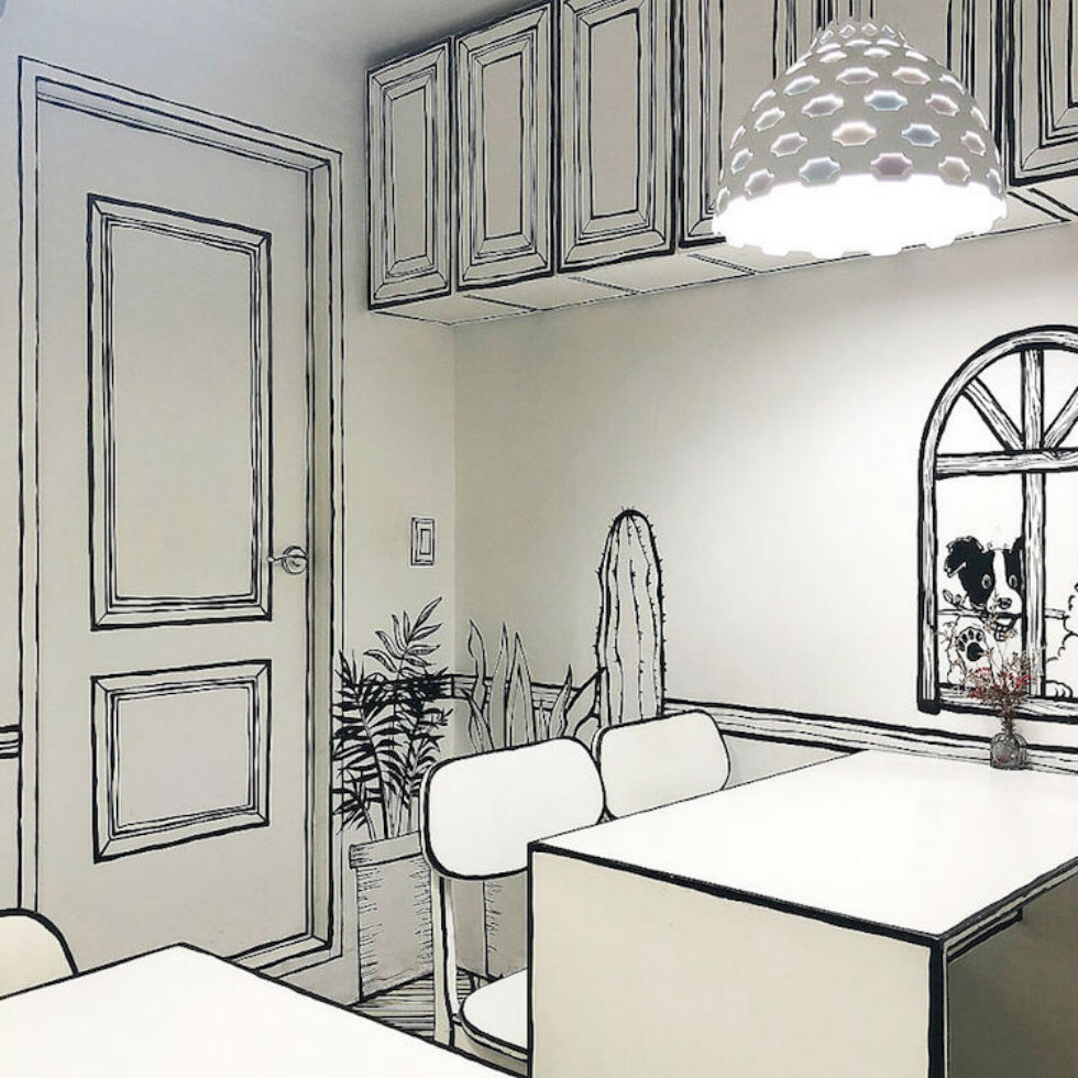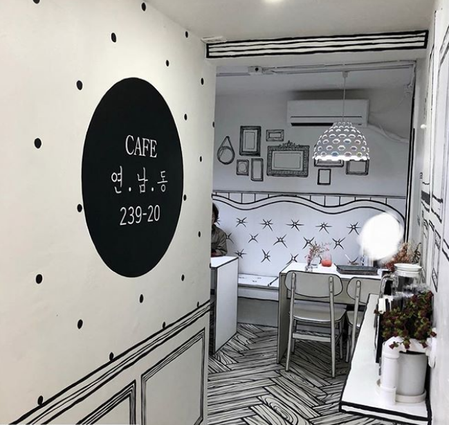 Se trata del Cafe Yeonnam-dog 239-20, ubicado en Seúl, Corea, el cual al ingresar te hace sentir en una caricatura en donde todo da la ilusión de ser 2D.
