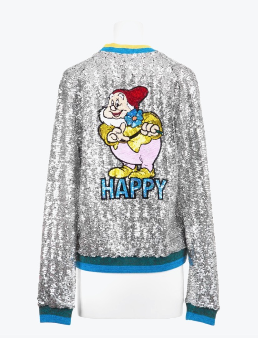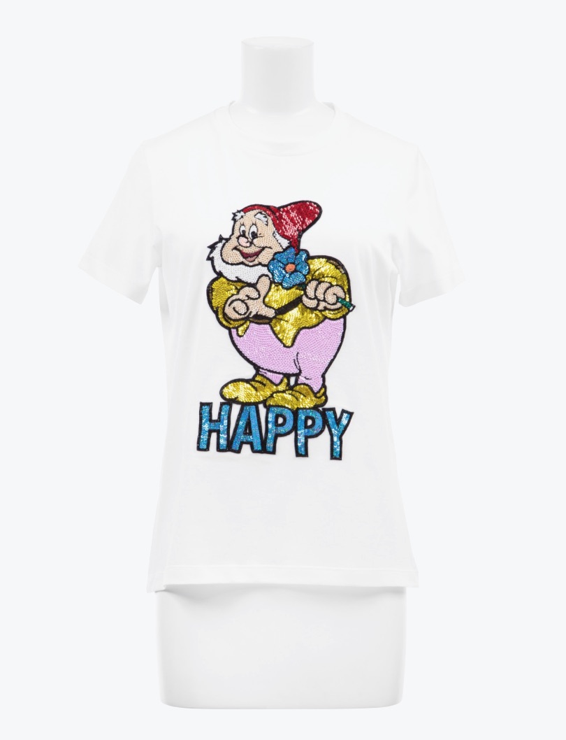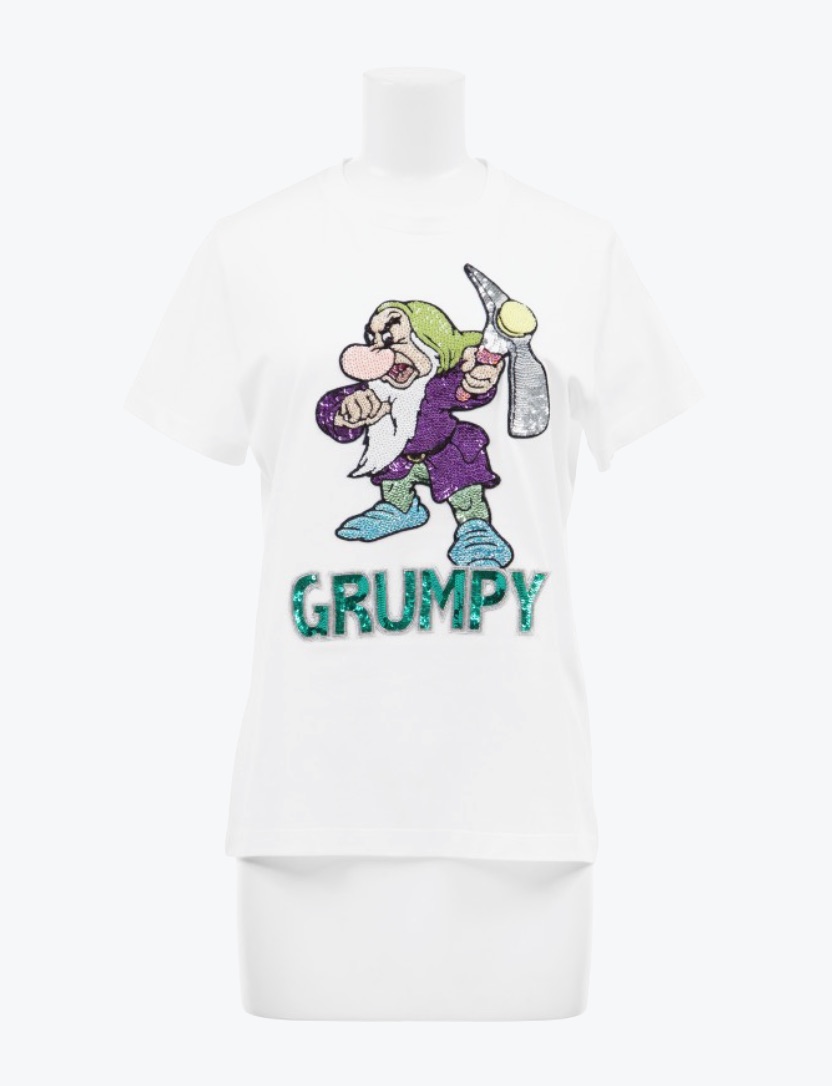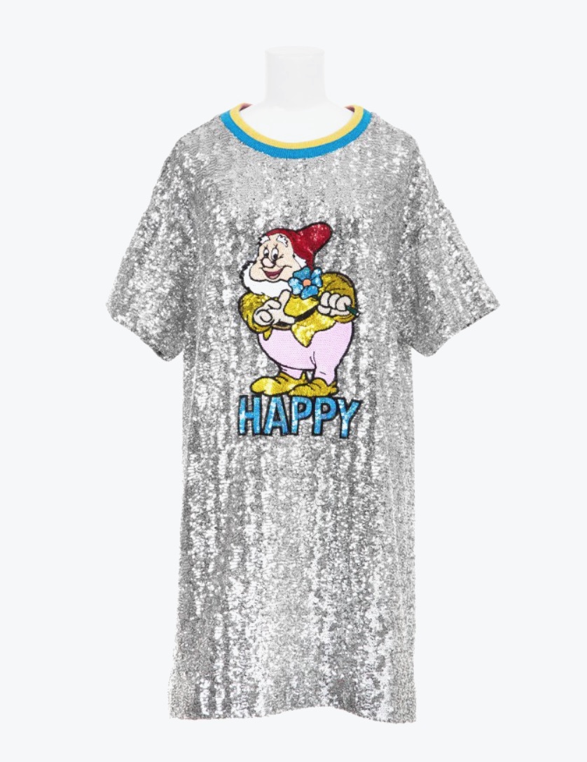 Y es que la diseñadora Mary Katrantzou lanzó una exclusiva serie para la firma parisina Colette. Incluye camisetas, vestidos y chaquetas cubiertas con lentejuelas y protagonizadas por Doc, Grumpy, Happy, Tímido, Sneezy, Sleepy y Dopey.