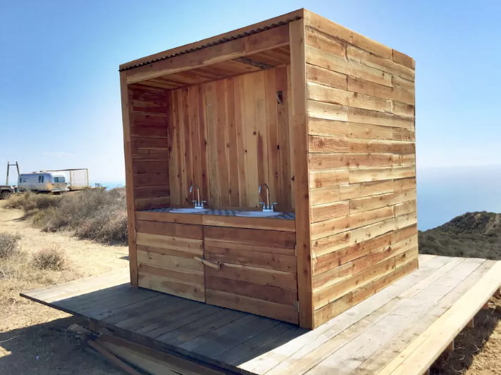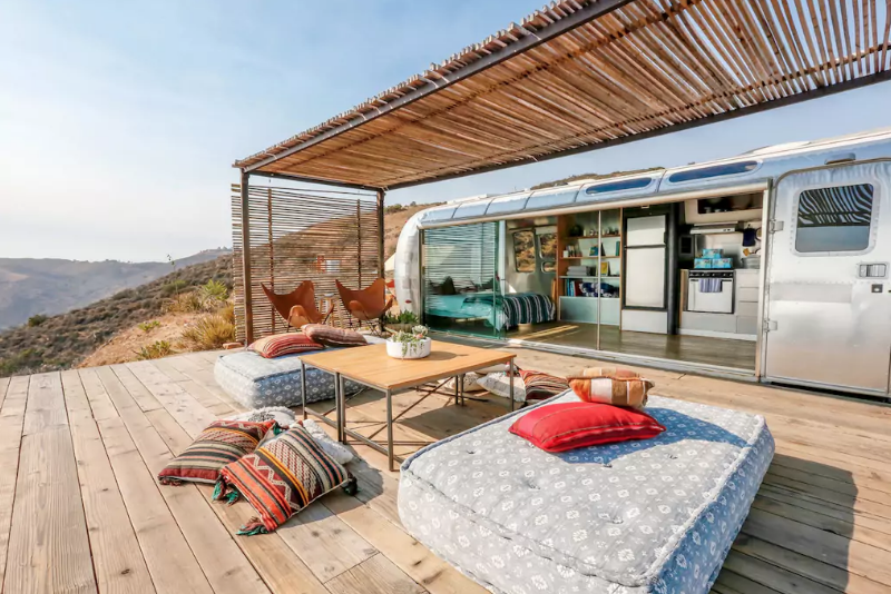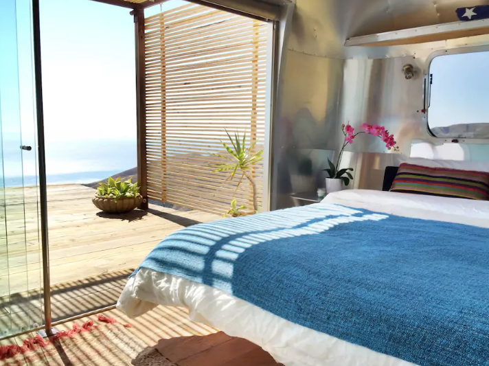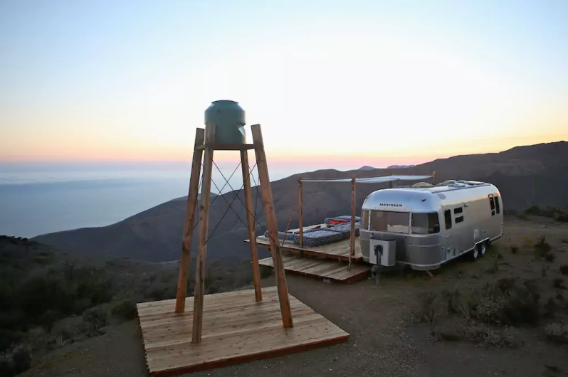 Este preciosisísimo camioncito representa totalmente su nombre: «Malibu Dream Airstream», y es todo un sueño porque se encuentra en lo alto de una montaña y con las nubes de fondo; si miras un poco más abajo, podrás disfrutar del azul del mar californiano.