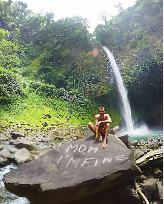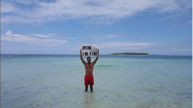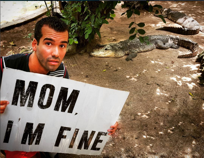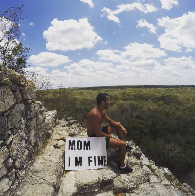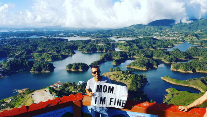 Resulta que su primer destino fue Cuba, pero debido a complicaciones para comunicarse con su madre, creó una cuenta de Instagram donde compartió una foto con un letrero que decía: «Mamá, estoy bien«. Fue a raíz de eso y tras ver el éxito que su foto generó, que siguió compartiendo sus imágenes con este mensaje, que ha conseguido tanta popularidad, que el perfil ‘Mom I’m fine‘ ya tiene más de 20 mil seguidores.