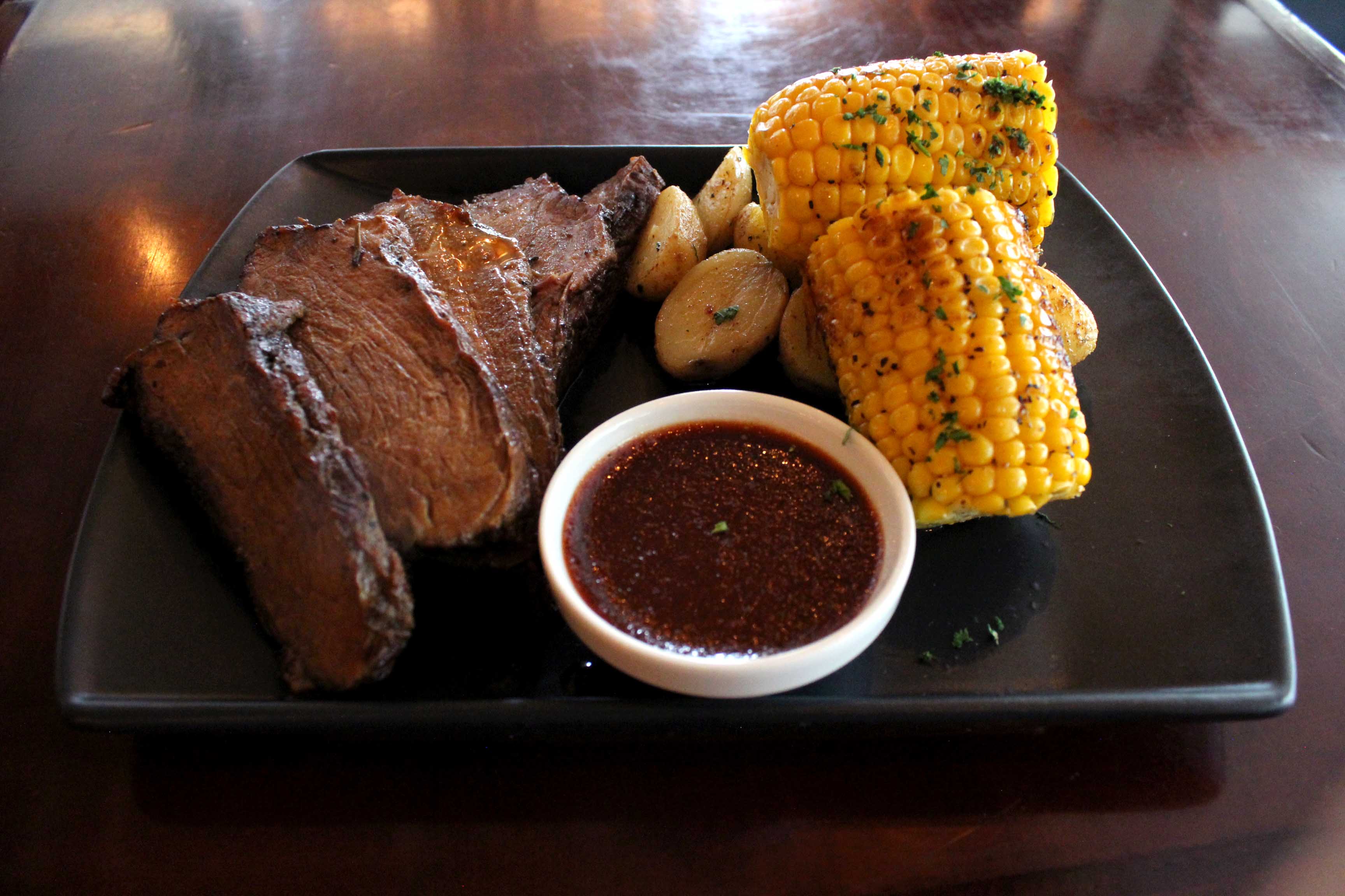 Como plato fuerte te recomendamos ordenar brisket al horno, no te vas a arrepentir, pues es una carne súper suave y jugosa acompañada de papa cambray y elote asado a la mantequilla. además, la puedes combinar con una salsa BBQ deliciosa.