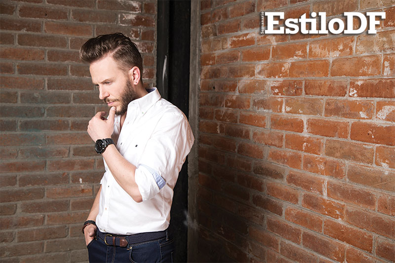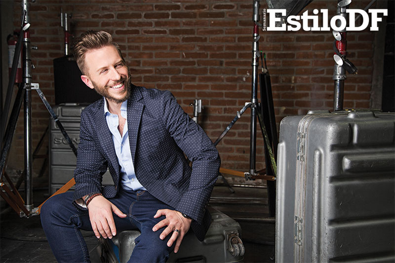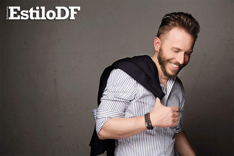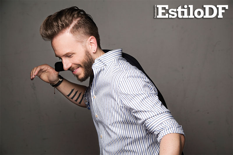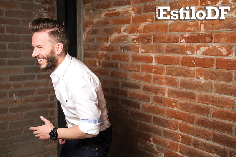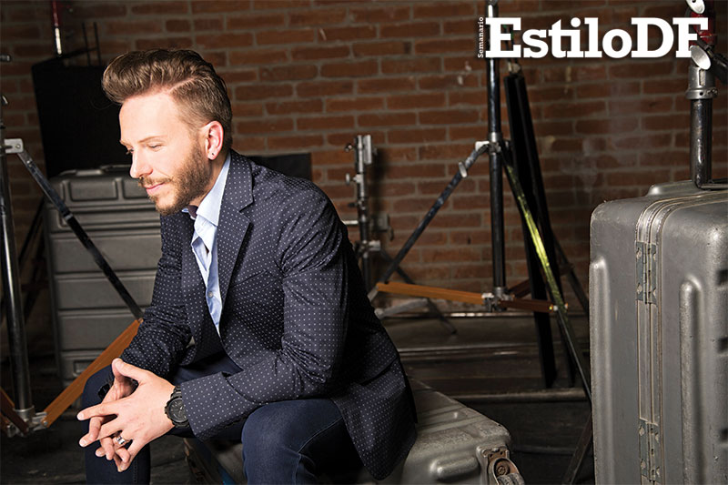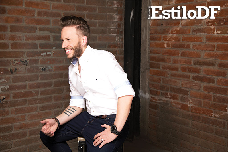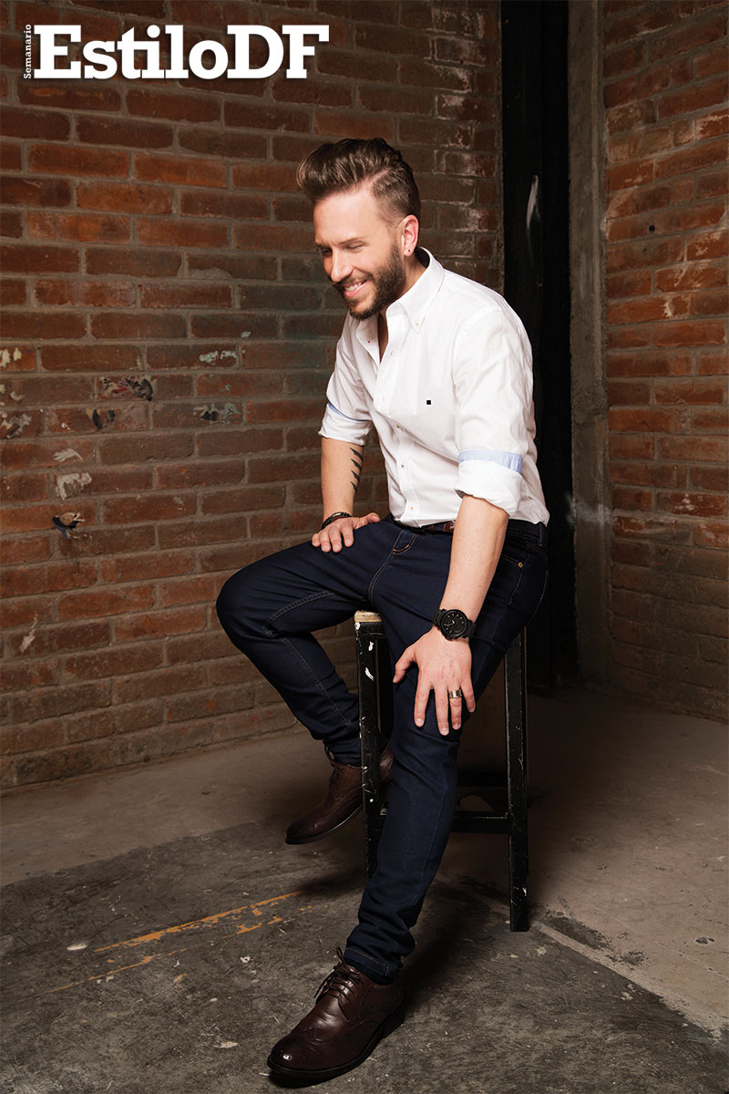Con unos jeans naranjas, camisa blanca decorada por rayas verticales y con el cansancio natural que produce una sesión de fotos y grabar un programa de TV, el compositor y cantante tuvo la amabilidad de sentarse a platicar con EstiloDF. Confesó que de no ser popero, sería rapero, justo como Eminem en un su película 8 mile.
