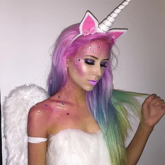 A esta criatura mitológica representada como un caballo blanco y un cuerno en la frente, ya la vimos en maquillaje, ropa, comida e incluso en una bebida, así que vestirte como una te dará una apariencia sumamente mágica.