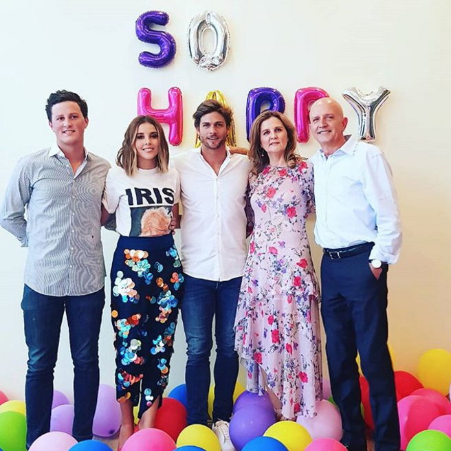 Luciendo un jumpsuit azul marino, la estrella de ‘Mi corazón es tuyo’ posó al lado de sus padres y hermano, así como con grandes amigos como Polo Morín, quien fuera su compañero en la exitosa telenovela de Televisa.