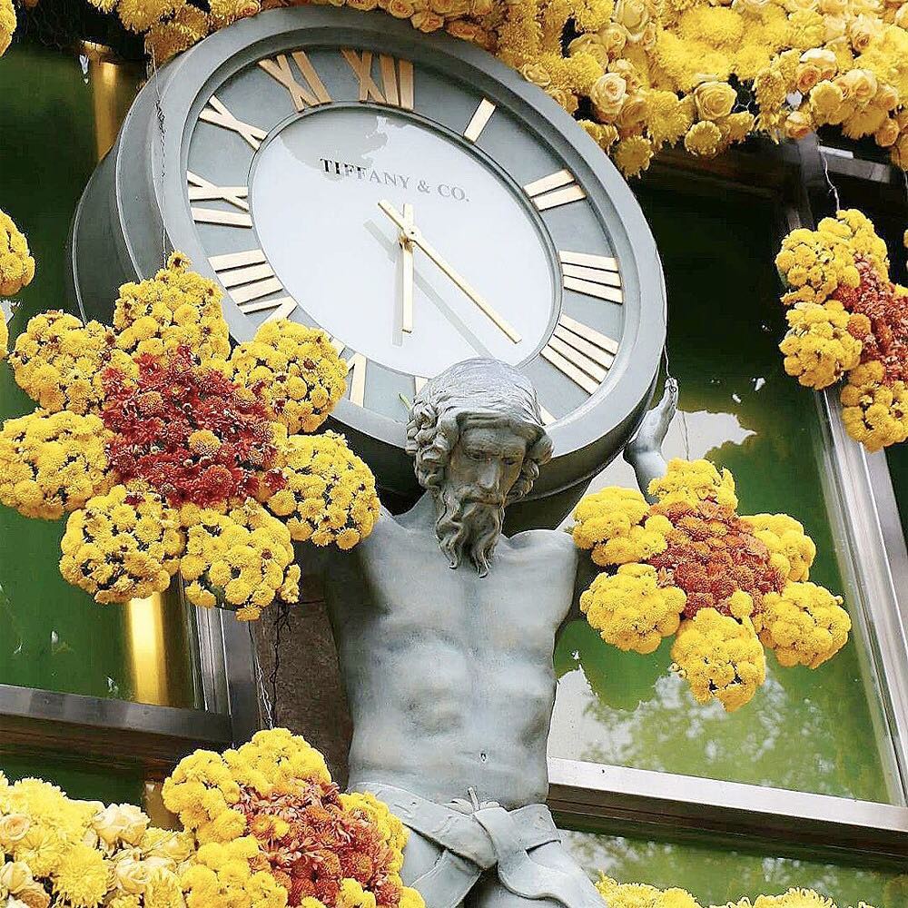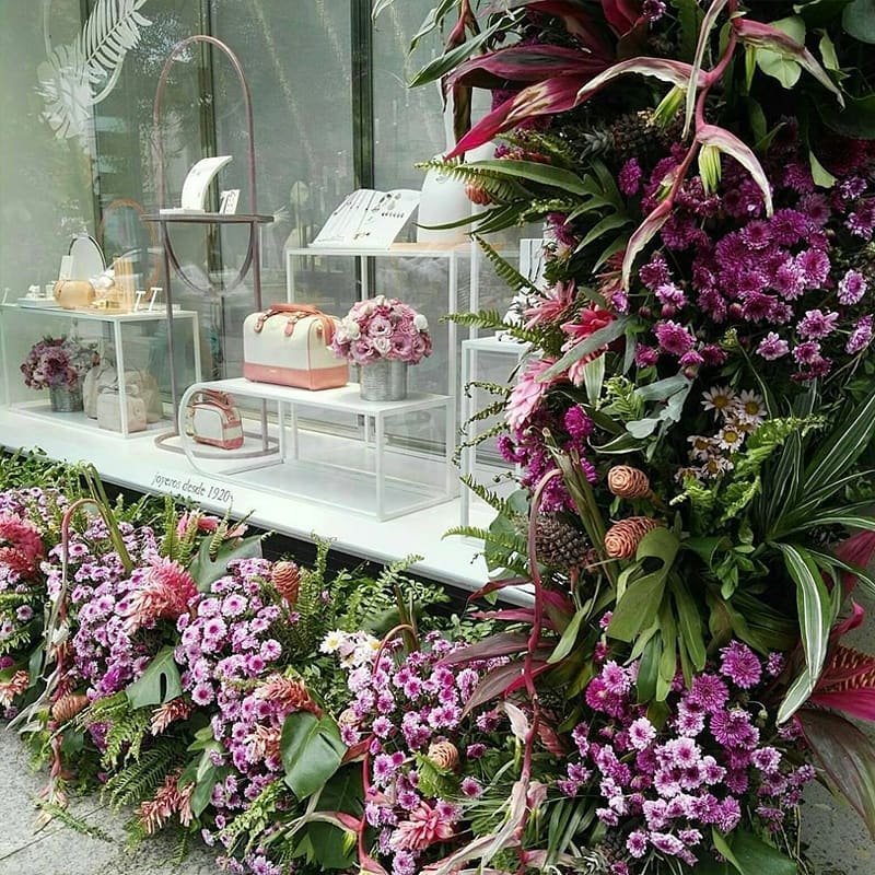 Instalaciones gigantes que decoran las fachadas de las tiendas y que cada año se vuelven más originales y artísticas, demostrando el arte de la jardinería, arquitectura y paisajismo, al mismo tiempo que exponen la gran riqueza floral que tiene nuestro país.