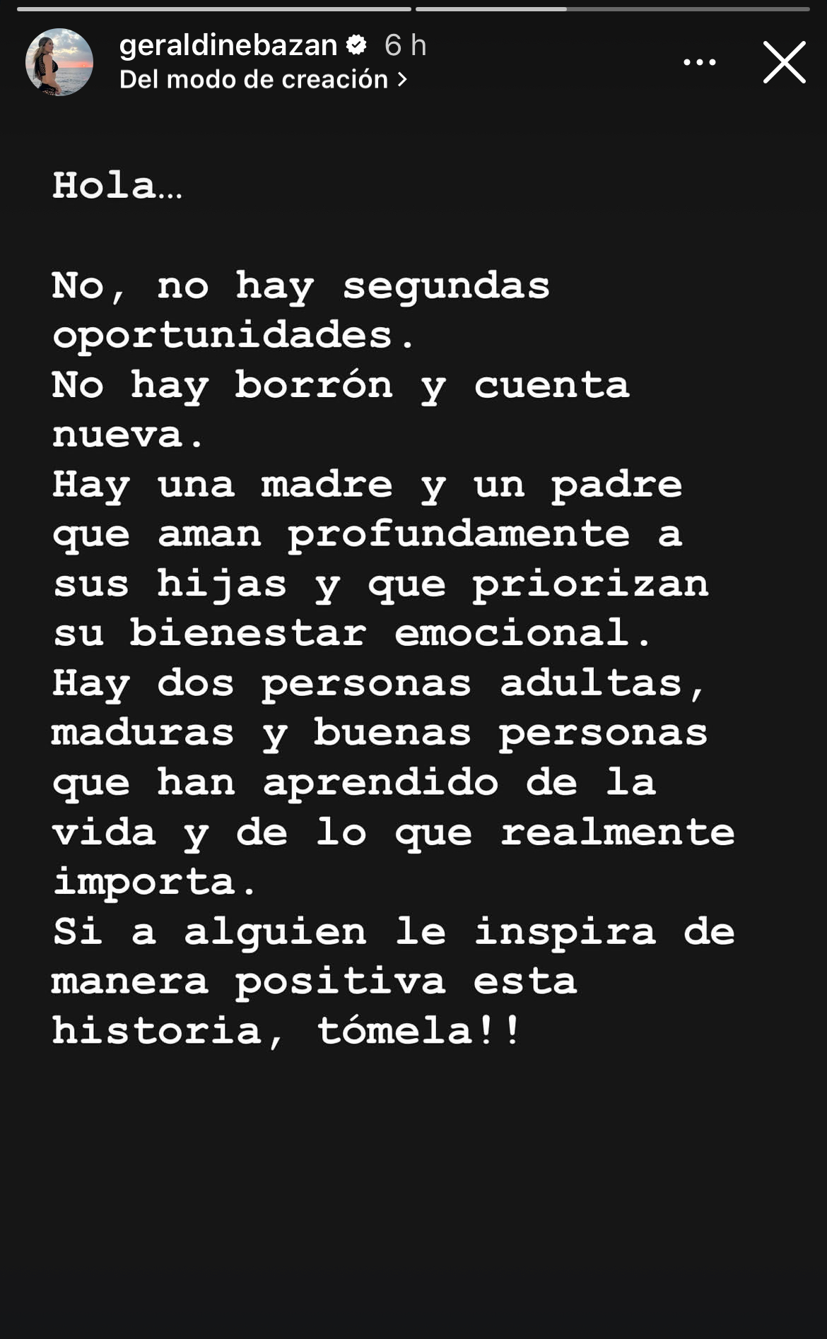 “Geraldine siempre ha sido una persona importantísima en mi vida; siempre va a ser mi familia. Es la mamá de mis hijas y merece todo mi respeto, mi cariño y mi apoyo”, declaró recientemente Soto, quien a sus 50 años asegura haber aprendido de los errores del pasado.