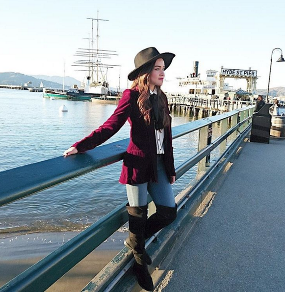 En sus fotografías, Gaby muestra que puedes combinar en capas, desde botas, skinny jeans, suéteres, blusas de cuello y accesorios como lentes y el rey del invierno: los sombreros fedora.