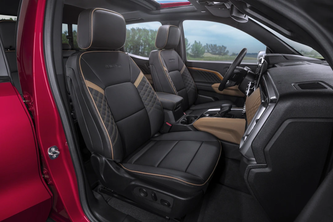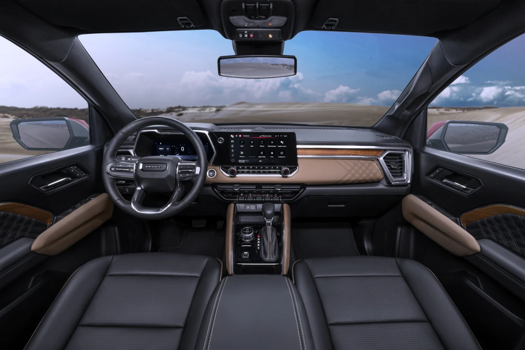 Para reafirmar que estamos a bordo de un GMC, la versión Denali presume de casi todas sus superficies forradas en piel de uso rudo, maderas grabadas y aluminio.