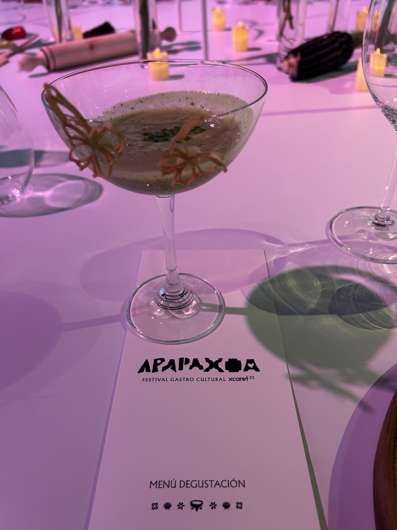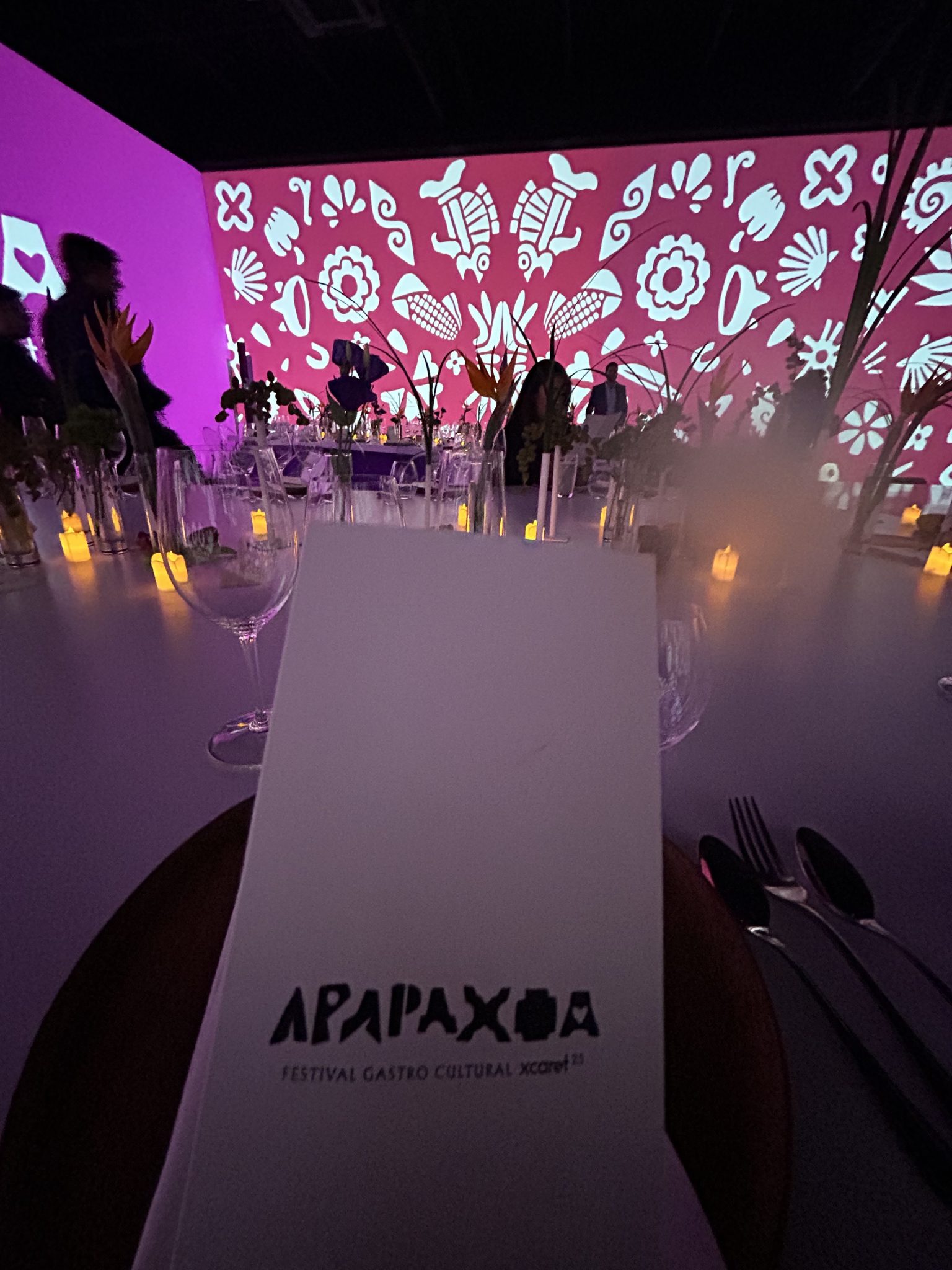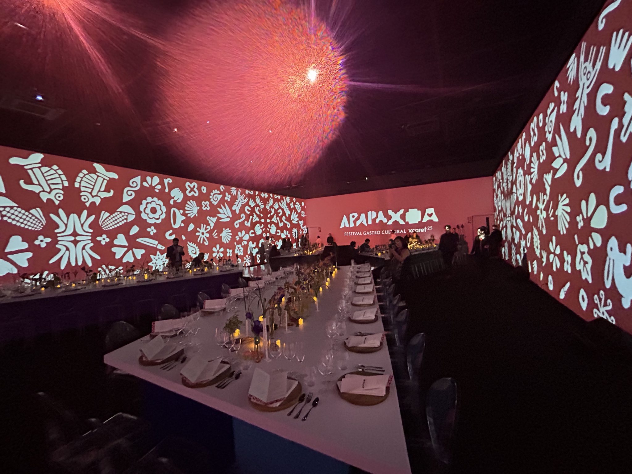 Desde el primer paso, el viaje comenzó. Pasillos inmersivos recibía a los invitados para adentrarse en el universo Xcaret. Un coctel de bienvenida —fresco, colorido y misterioso— servía como antesala a una experiencia que no sería solo gastronómica, sino emocional.
