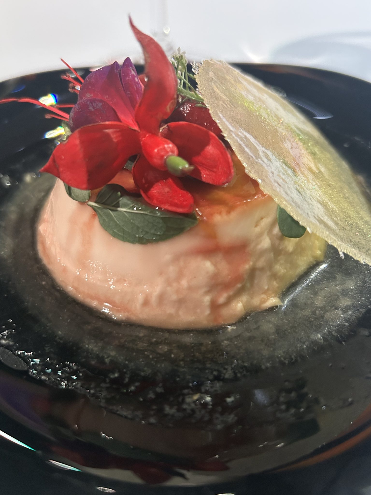 Para el cierre dulce, Guadalupe, un postre que combinó flan de coco con piña, ciruela fermentada y un techo de caramelo crujiente, se convirtió en metáfora perfecta de la velada, dulce, compleja y profundamente mexicana.